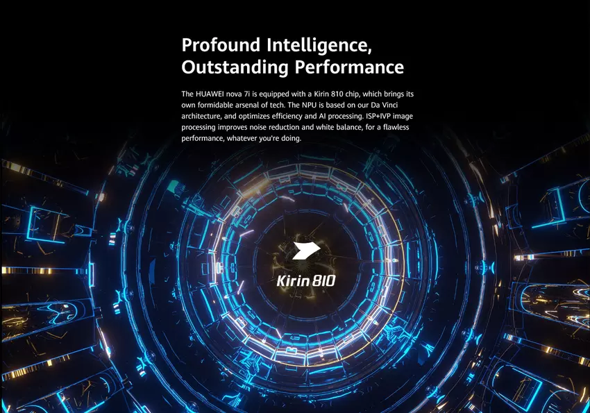 Działa Huawei Nova 7i na zastrzeżonej ośmiordzeniowej platformie Kirin 810. To pierwszy smartfon z takim układem na rynku globalnym. Do tego momentu urządzenia na nim oparte były wydawane tylko w Chinach.