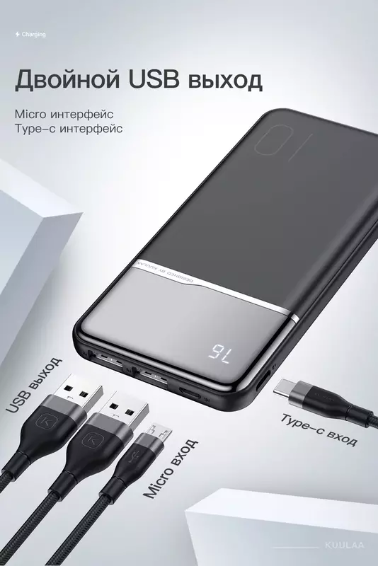 Jeden z najbardziej popularnych pauerbankov na AliExpress - Firmy KUULAA. To lekki przenośny akumulator do ładowania smartfonów i tabletów.