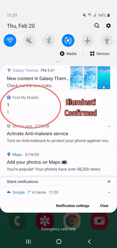 Recently, a notification about “Find My Mobile 1” occurred on a limited number of Galaxy devices. This was sent unintentionally during an internal test and there is no effect on your device. We apologize for any inconvenience this may have caused our customers. ^LF