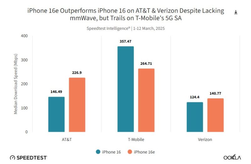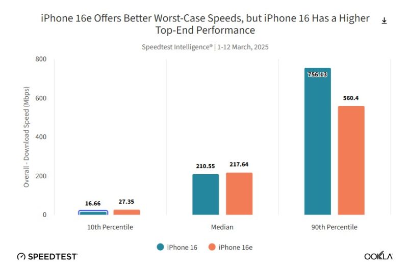 Apple zaprezentowało swój modem C1 w nowym iPhonie 16e, który wykazał wyższość nad modemem Qualcomm w większości testów przeprowadzonych przez Ookla.