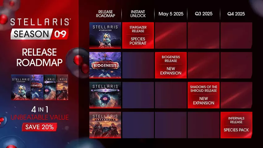 - Paradox wyda Infernals Species Pack pod koniec roku. Dodatek ten doda nowe gatunki biologiczne, które przystosowały się do ekstremalnie wysokich temperatur. Gracze muszą znaleźć dla nich zastosowanie, aby wykorzystać je do zmiany galaktyki.