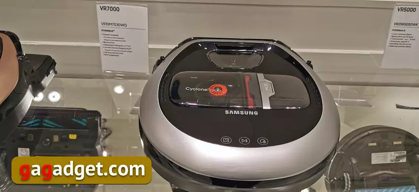 Trzeci nowy model - robot odkurzacz serii POWERbot VR7200 (numer artykułu VR20R7250WD) wygląda jak uproszczona wersja odkurzacza, który jest już w sprzedaży VR20R7260WC z ceną 880 USD. Ma asystenta głosowego, który mówi, co robi, funkcję samoczyszczenia szczotki (mówimy o specjalnych niszczarkach wbudowanych w mechanizm szczotek, które tną włókna i włosy, zapobiegając ich owinięciu się wokół szczotki). A nawet wyższa moc ssania niż VR7000. O tym, jaka będzie różnica między nowym produktem a jego poprzednikiem, trudno jest również ustalić na podstawie pozornej znajomości warunków wystawy, ale niższy numer artykułu wskazuje, że model jest nieco łatwiejszy (ale to nie jest napewno).