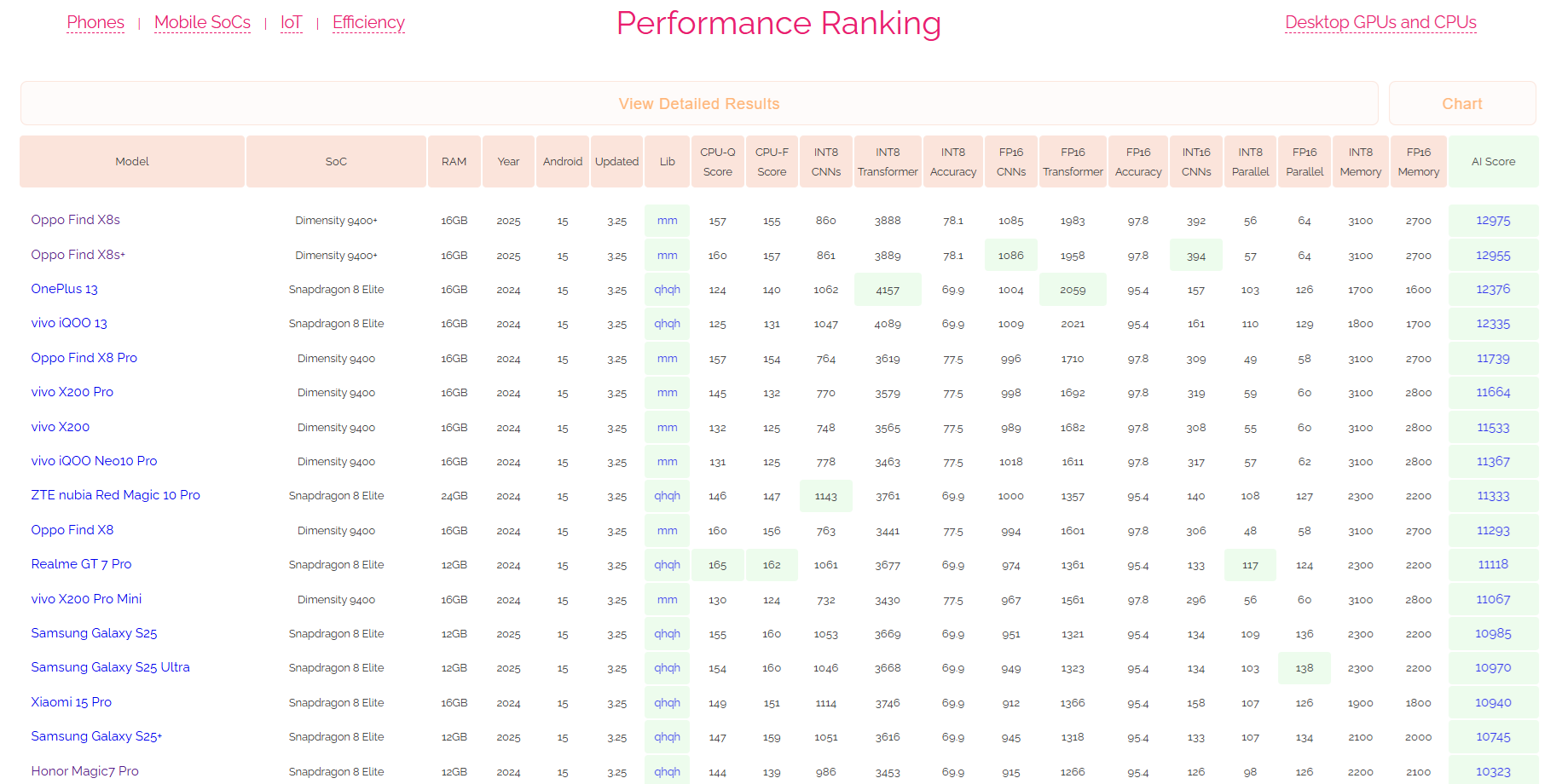Smartfony OPPO Find X8s i Find X8s+ z tym chipsetem zajęły czołowe miejsca, wyprzedzając urządzenia oparte na Snapdragon 8 Elite. Find X8s zdobył 12 975 punktów, podczas gdy najbliższy konkurent na Snapdragon 8 Elite, OnePlus 13, zdobył 12 376 punktów.