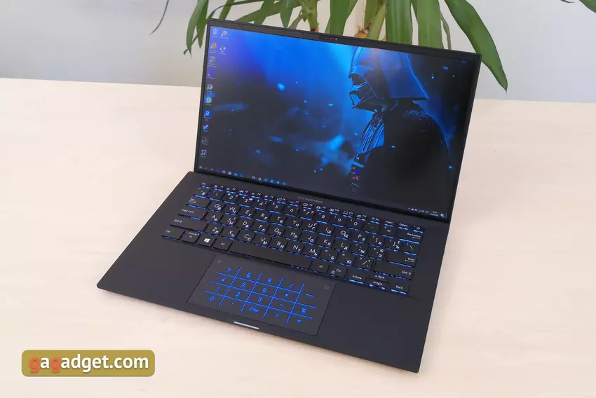 ASUS umieścił wiele interesujących i przydatnych rozwiązań w ExpertBook B9450FA. Laptop waży tylko 995 g w naszej konfiguracji z dużą baterią, a bardziej skromna wersja ma wogule 870 g. Jednocześnie twierdzi się, że obudowa jest bardzo trwała i zgodna ze standardem MIL-STD 810G, a niewielką ilość płynu można bezboleśnie rozlać na klawiaturę. Touchpad jest połączony z dotykowym panelem cyfrowym (inaczej NumberPad). Jednocześnie w procesorze zainstalowano procesory Intel Core i5 lub i7 10. generacji, 8-16 GB pamięci RAM w trybie dwukanałowym i do 2 dysków SSD NVMe PCIe 3.0x4 o pojemności 1 TB każdy. Oprócz ochrony fizycznej zapewniono skaner linii papilarnych, kamerę na podczerwień do określania właściciela, moduł TPM 2.0, fizyczną kurtynę kamery internetowej i LAN przez micro HDMI ze stałym adresem MAC. Nawiasem mówiąc, o złączach: są również dobrą ilością. Istnieją pełnowymiarowe złącza HDMI i USB 3.1 Gen 2, a także 2xThunderbolt 3 USB-C. Z interfejsów bezprzewodowych jest Wi-Fi 6 (802.11ax) i Bluetooth 5.0. Ekran to 14-calowy ekran IPS z rozdzielczością FullHD, matowym wykończeniem i technologią Panel Self Refresh (dokładniej opiszemy poniżej). Obiecują, że żywotność baterii może wynosić do 24 godzin. I jeszcze jedna interesująca kwestia - laptop jest certyfikowany przez Intel Project Athena.