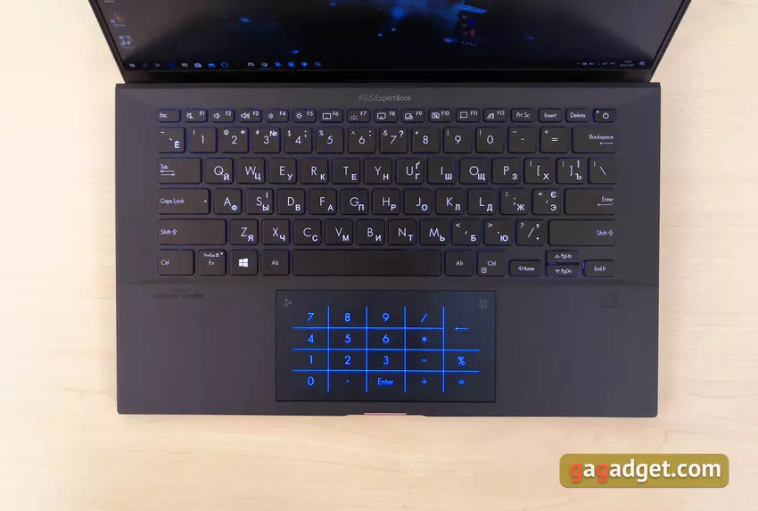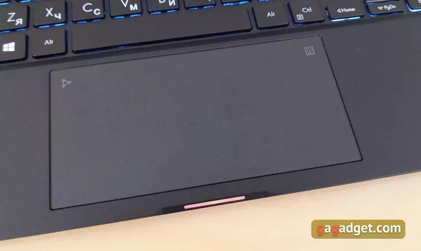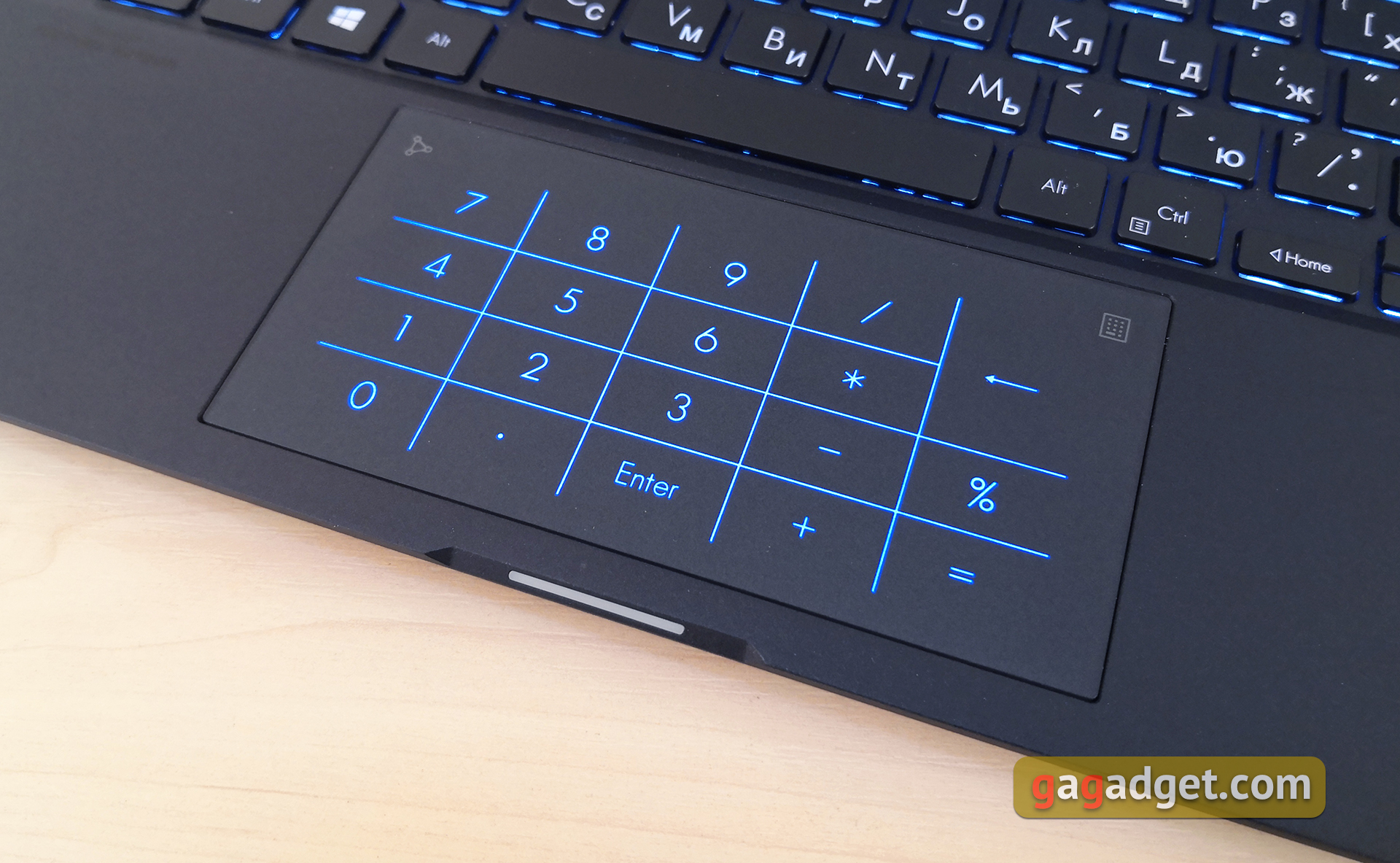 Jest on połączony z dotykową klawiaturą cyfrową NumberPad; widzieliśmy już to rozwiązanie w firmie ASUS. NumberPad jest aktywowany poprzez kliknięcie przycisku dotykowego w rogu i ma 2 poziomy podświetlania znaków. Jednocześnie aktywowany NumberPad działa również jako znajomy panel dotykowy.