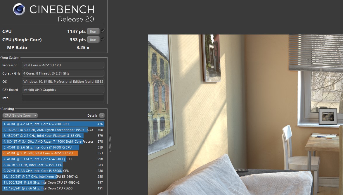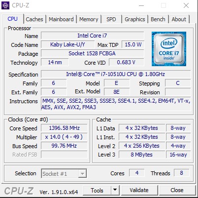 | edytor | Intel Rdzeń i7-10510U 4 rdzenie 8 przepływów 1.9-4.8 GHz (Comet Lake-U 14 nm) |