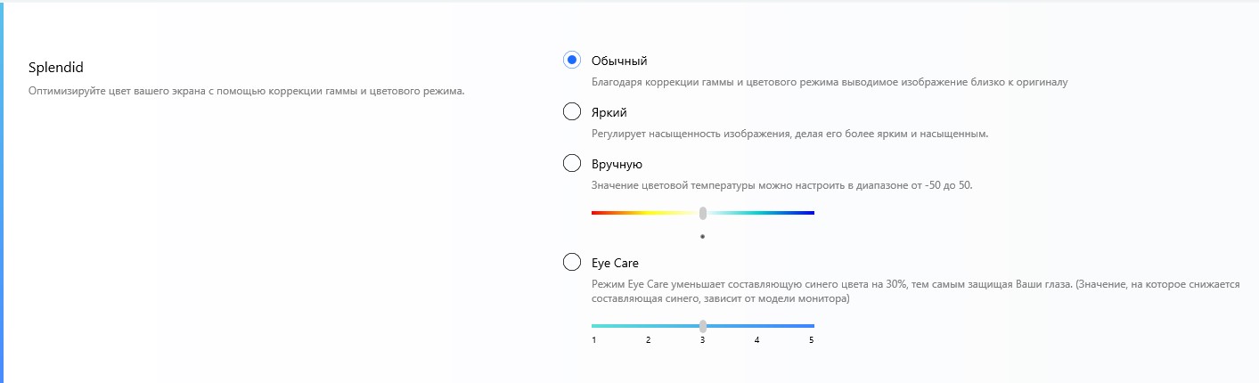 Za pomocą oprogramowania możesz regulować temperaturę barwową i włączać ochronę oczu.