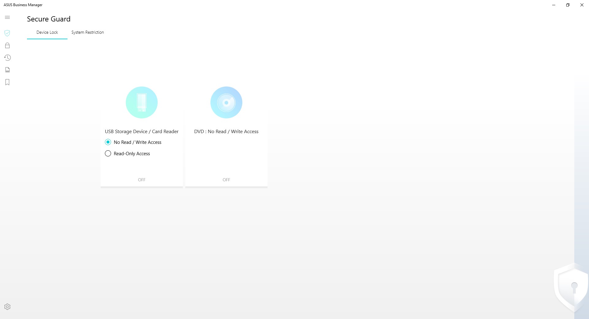 Ponadto spośród wstępnie zainstalowanych aplikacji jest Amazon Alexa (nie jest to szczególnie istotne dla nas i prawdopodobnie nie zostanie wstępnie zainstalowana w komercyjnych próbkach), zwykły MyASUS dla wszystkich podstawowych ustawień laptopa, w tym ekranu, trybów ładowania, aktualizacji oprogramowania i tak dalej. I bardziej „wąski profil” ASUS Business Manager dla laptopów korporacyjnych. Ma możliwość szyfrowania zewnętrznych dysków, wbudowaną pamięć masową, blokowanie rejestru przed zmianami, datę / godzinę, niszczarkę plików (wszystko jest jasne według nazwy) oraz możliwość zastąpienia logo w BIOSie podczas ładowania laptopa.