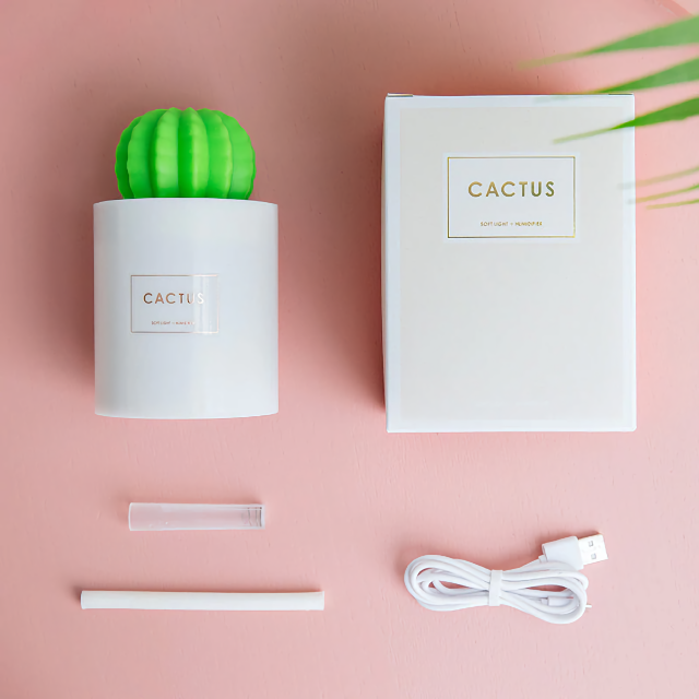 Urządzenie ma kompaktowy rozmiar (średnica tylko 8 cm) i atrakcyjny wygląd w postaci kaktusa. Pojemność kolby na wodę wynosi 280 ml. Ta objętość wystarcza na 4 godziny pracy urządzenia.