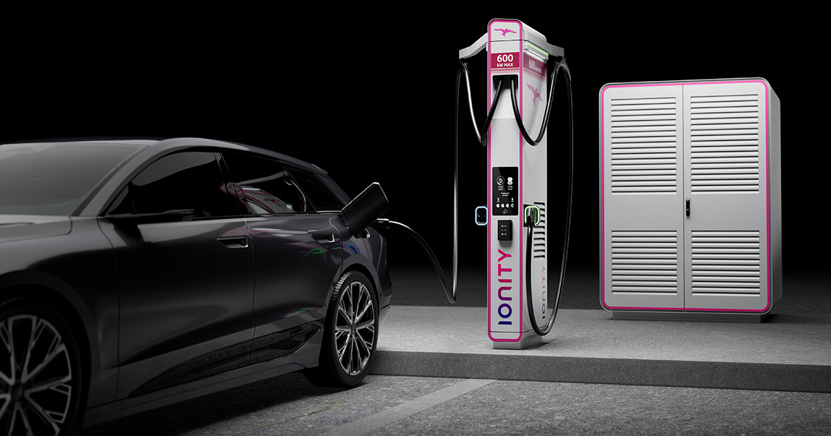 Samochód elektryczny na stacji ładowania Ionity o mocy 600 kW. Źródło: Ionity