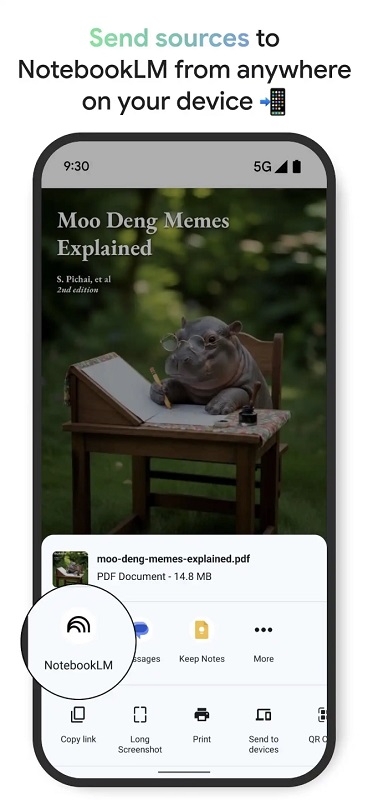 NotebookLM to serwis do pracy z dokumentami, notatkami i innymi osobistymi zapiskami z wbudowanym asystentem AI. Funkcjonalność aplikacji jest taka sama jak w wersji przeglądarkowej i pozwala na systematyzowanie zapisków, przypomina o nadchodzących wydarzeniach i pomaga nie zapomnieć o planach na najbliższy czas.