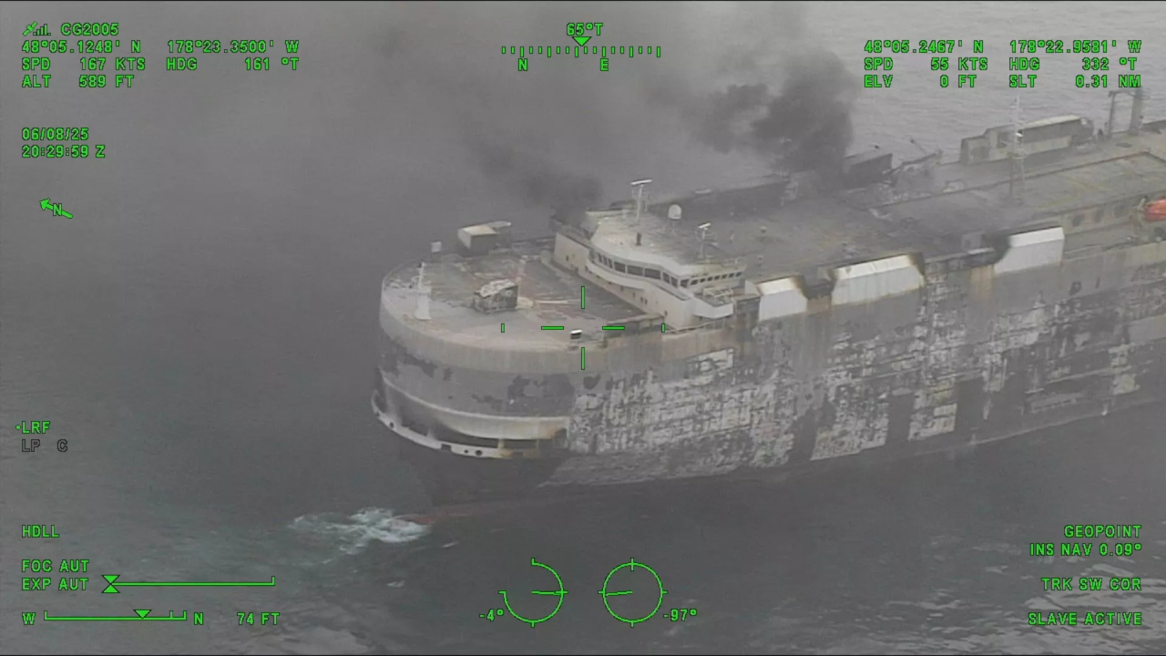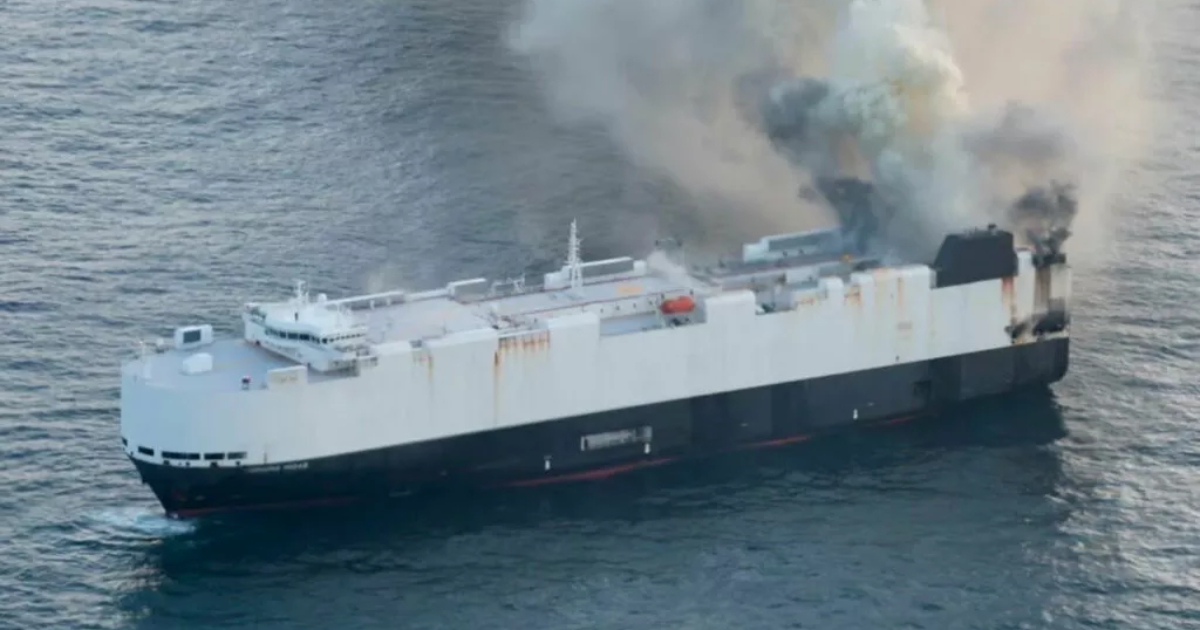 Płonący statek, załadowany samochodami, zatonął w wodach międzynarodowych