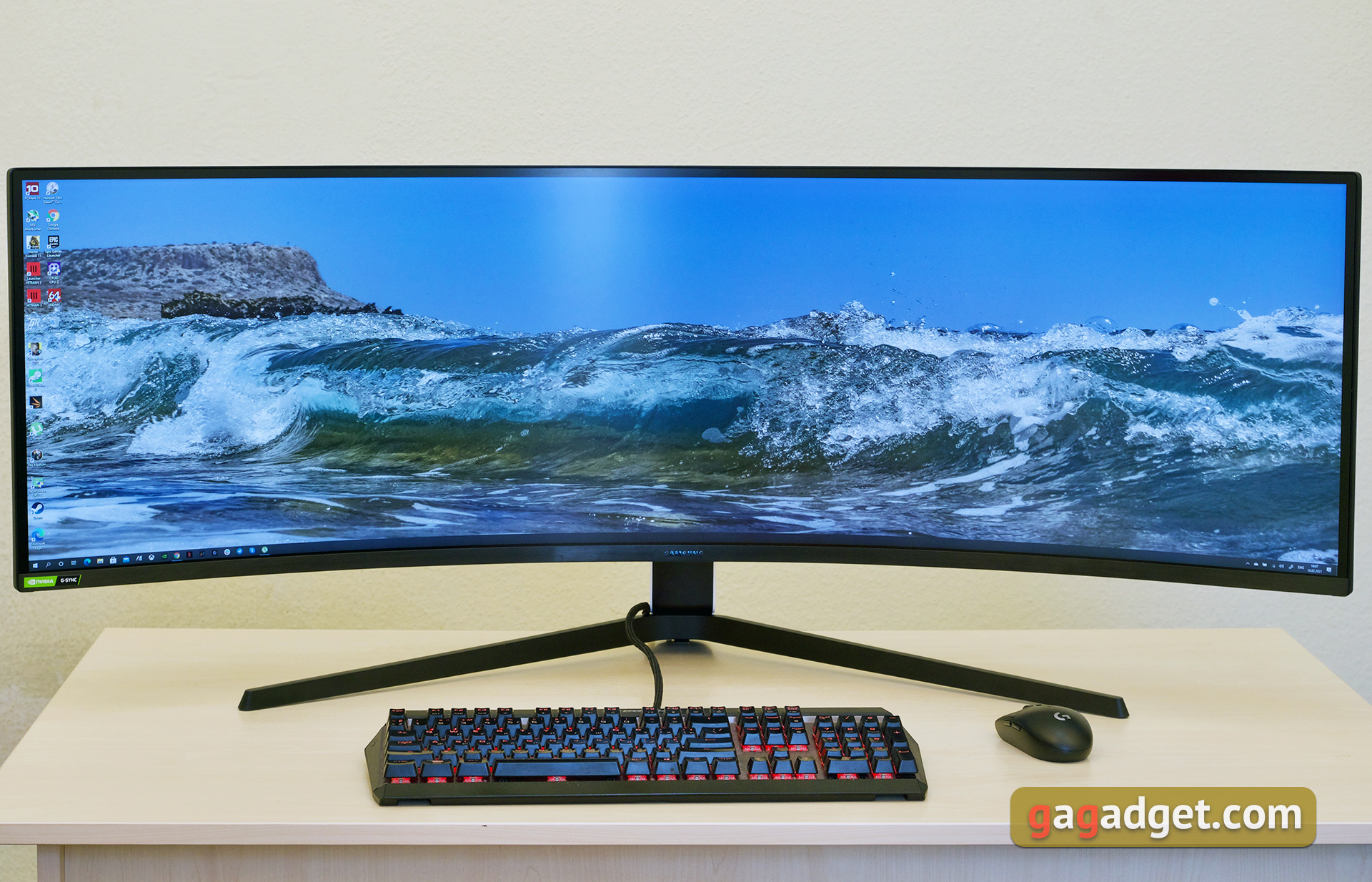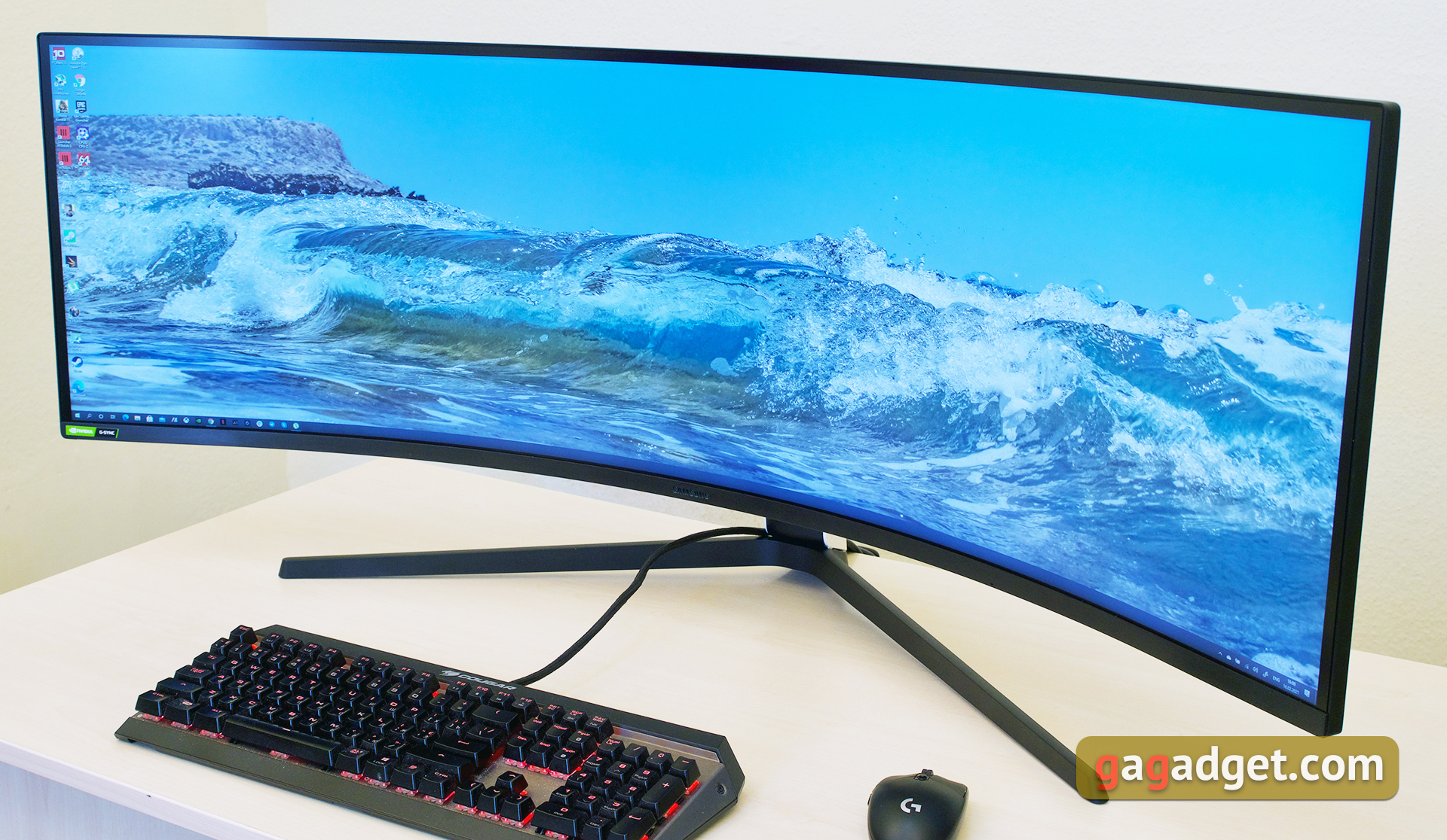Podobnym produktem z nieco inną pozycją na rynku, jest Philips Brilliance 499P9H, który już był przez nas omówiony. Wykorzystuje też 49-calową 10-bitową matrycę VA o rozdzielczości 5120x1440 i posiada certyfikat VESA DisplayHDR 400 (bohaterem dzisiejszej recenzji jest VESA DisplayHDR 1000). Philips ma promień krzywizny 1800R, więc jest mniej zakrzywiony. Philips przegrywa konkurentowi pod względem gier: częstotliwość odświeżania to tylko 70 Hz, czas reakcji piksela to 5 ms, obsługiwany tylko przez AdaptiveSync. Ale jest pełnoprawny koncentrator z Type-C i siecią RJ-45. Dodatkowo są wbudowane głośniki, a nawet wysuwana kamera internetowa. Więc korzystanie będzie przyjemnością. Jednocześnie jego koszt nieco niższy: nieco ponad 4500 złotych.