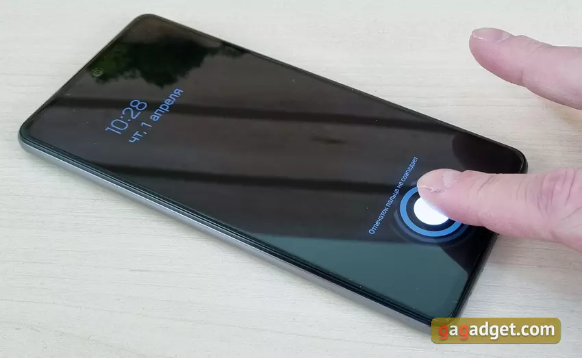 Do rozpoznawania twarzy używany jest przedni aparat bez dodatkowych czujników. Przy dobrym oświetleniu nie ma żadnych skarg na szybkość rozpoznawania. W przypadku niedostatecznego oświetlenia dostępna jest funkcja automatycznego zwiększania jasności ekranu jako podświetlenie. Częściowo pomaga, ale wskaźnik prędkości odpowiedzi nadal spada. W ustawieniach można zapisać do 4 odcisków palców, a także widok główny i alternatywny do rozpoznawania twarzy.