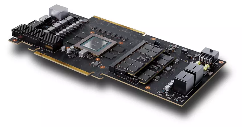 Jedną z najbardziej niezwykłych cech ZEUS jest pamięć: karty graficzne wyposażone są w LPDDR5X minimum 32 GB, a także posiadają sloty DDR5 SODIMM, pozwalające rozszerzyć pojemność do 384 GB - to rekordowy wskaźnik dla procesorów graficznych. Prototyp obsługuje PCIe 5.0 x16, CXL 3.0 oraz szybkie interfejsy sieciowe 400GbE i 800GbE QSFP-DD.