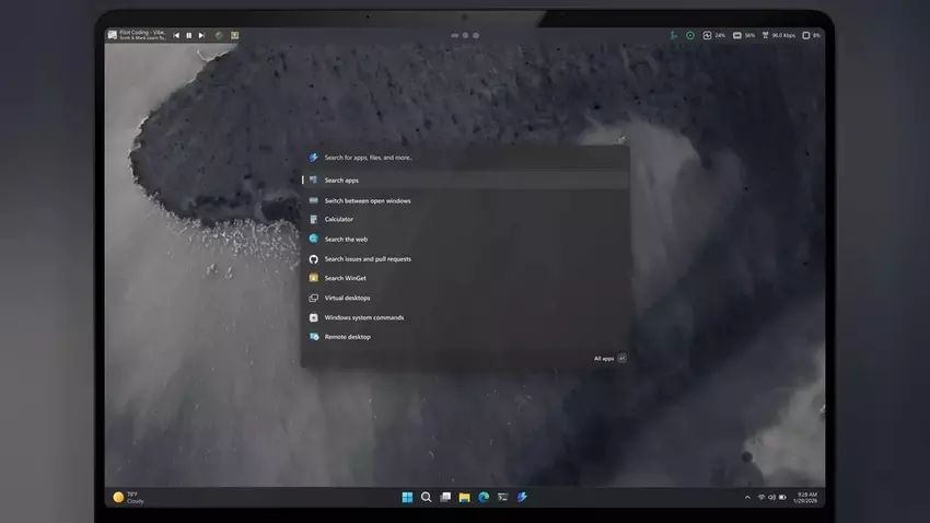 Górny panel będzie się rozciągał na całą szerokość ekranu i będzie częścią rozszerzonej funkcji Command Palette — narzędzia do szybkiego dostępu do funkcji systemowych.