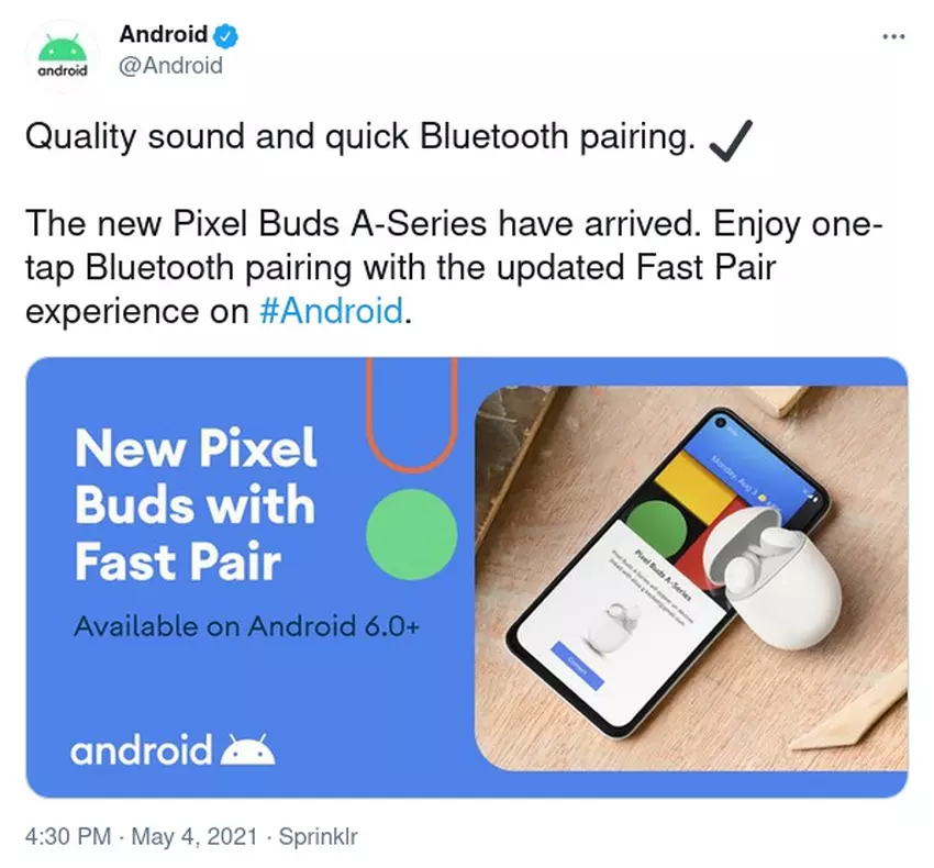 Konto Androida na Twitterze przypadkowo opublikowało post promocyjny z nowością. Oczywiście został on już usunięty, ale do sieci trafił zrzut ekranu. Wynika z niego, że nowe słuchawki będą wyglądały tak samo, jak zwykłe Pixel Buds. Dodatkowo otrzymają one białą kolorystykę obudowy oraz, co najważniejsze, funkcję Fast Pair z uaktualnionym interfejsem do smartfona.