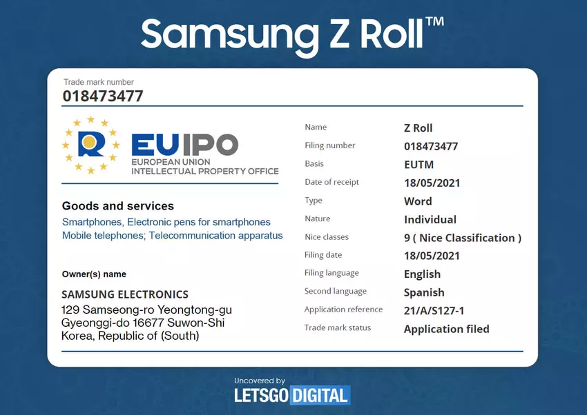 .Zgodnie z LetsGoDigital, firma zarejestrowała nazwę Galaxy Z Roll w Urzędzie Unii Europejskiej ds. Własności Intelektualnej (EUIPO). Najprawdopodobniej tak właśnie będzie nazywać się to urządzenie. Dokładna data premiery nowego produktu nie jest jeszcze dostępna, ale plotkuje się, że smartfon zostanie pokazany pod koniec tego lub na początku przyszłego roku.
