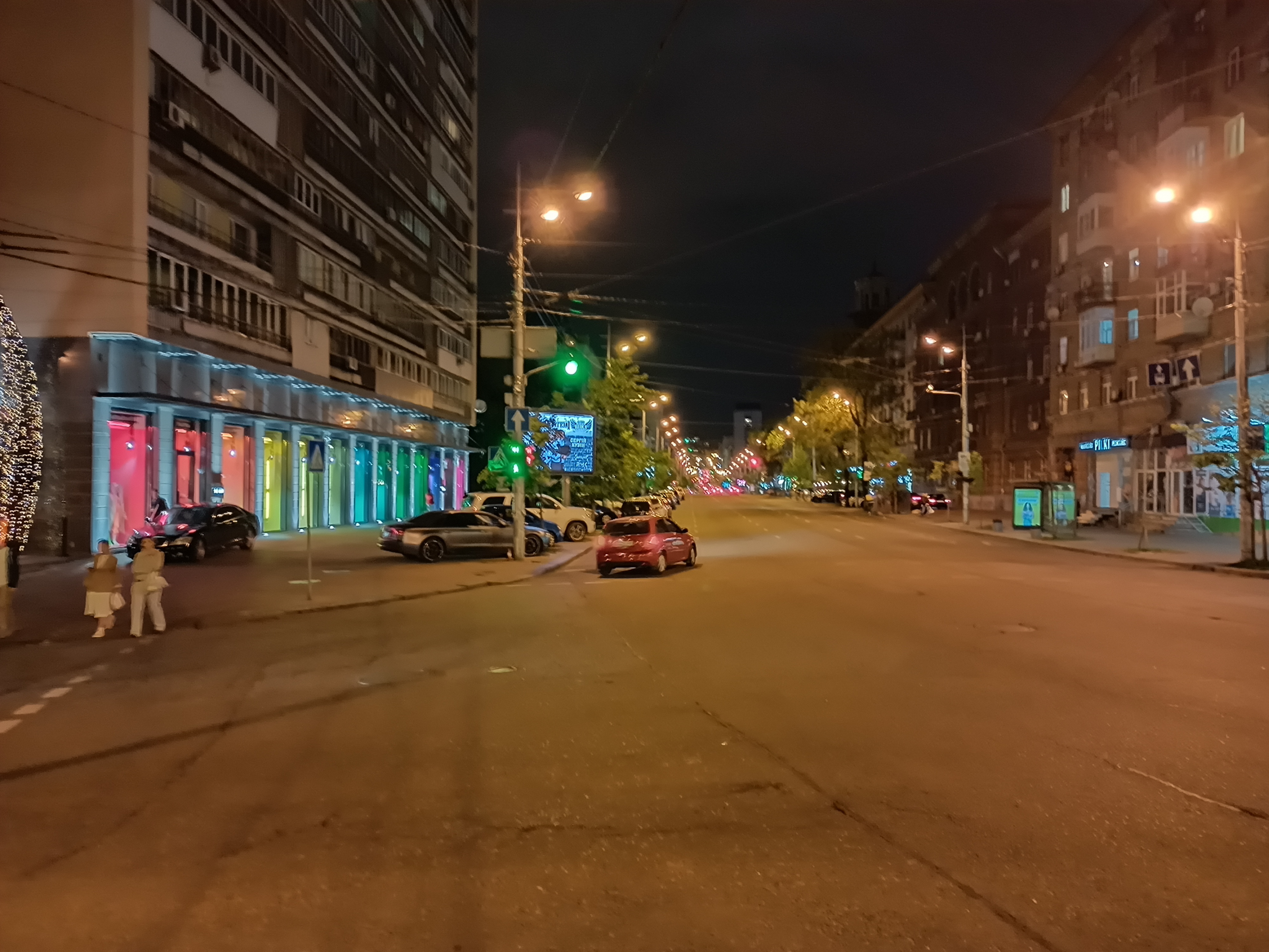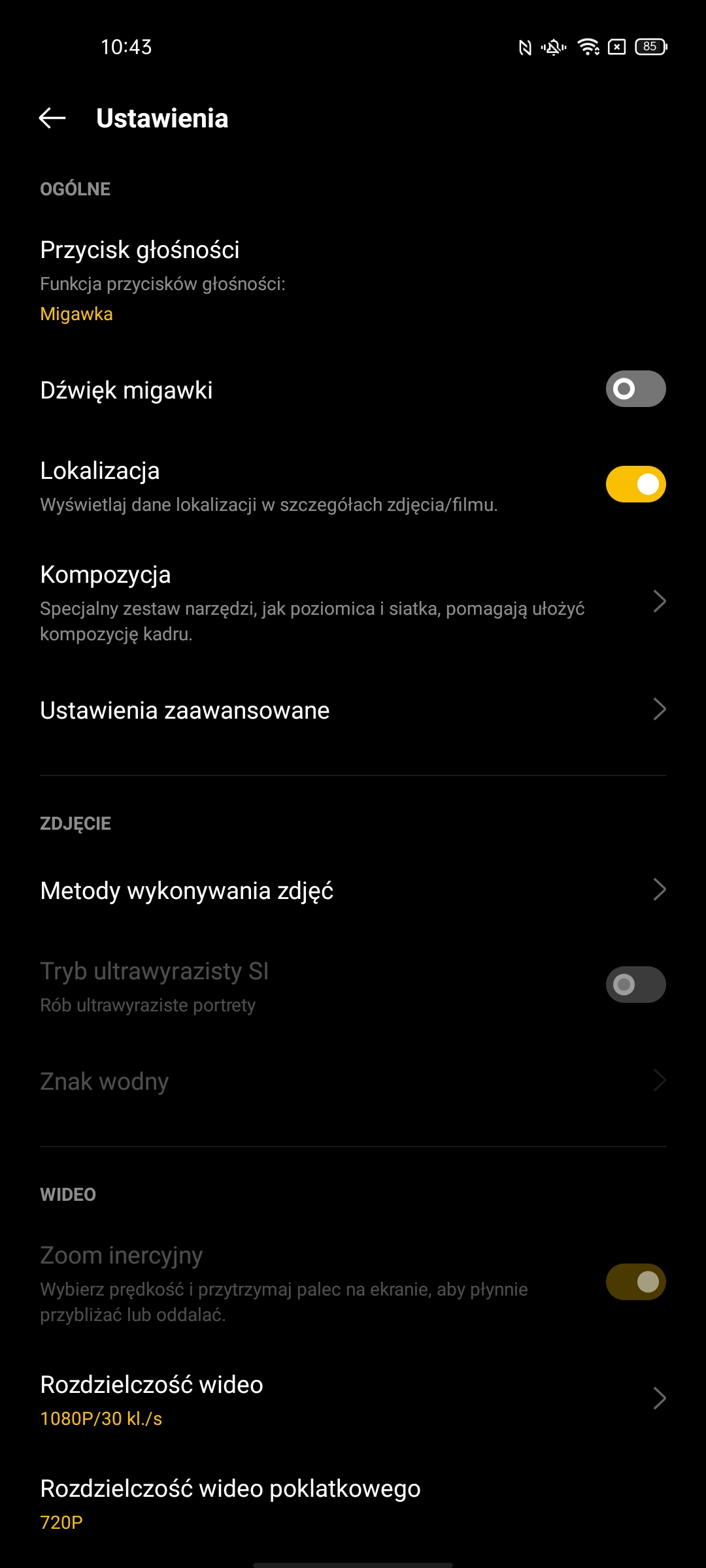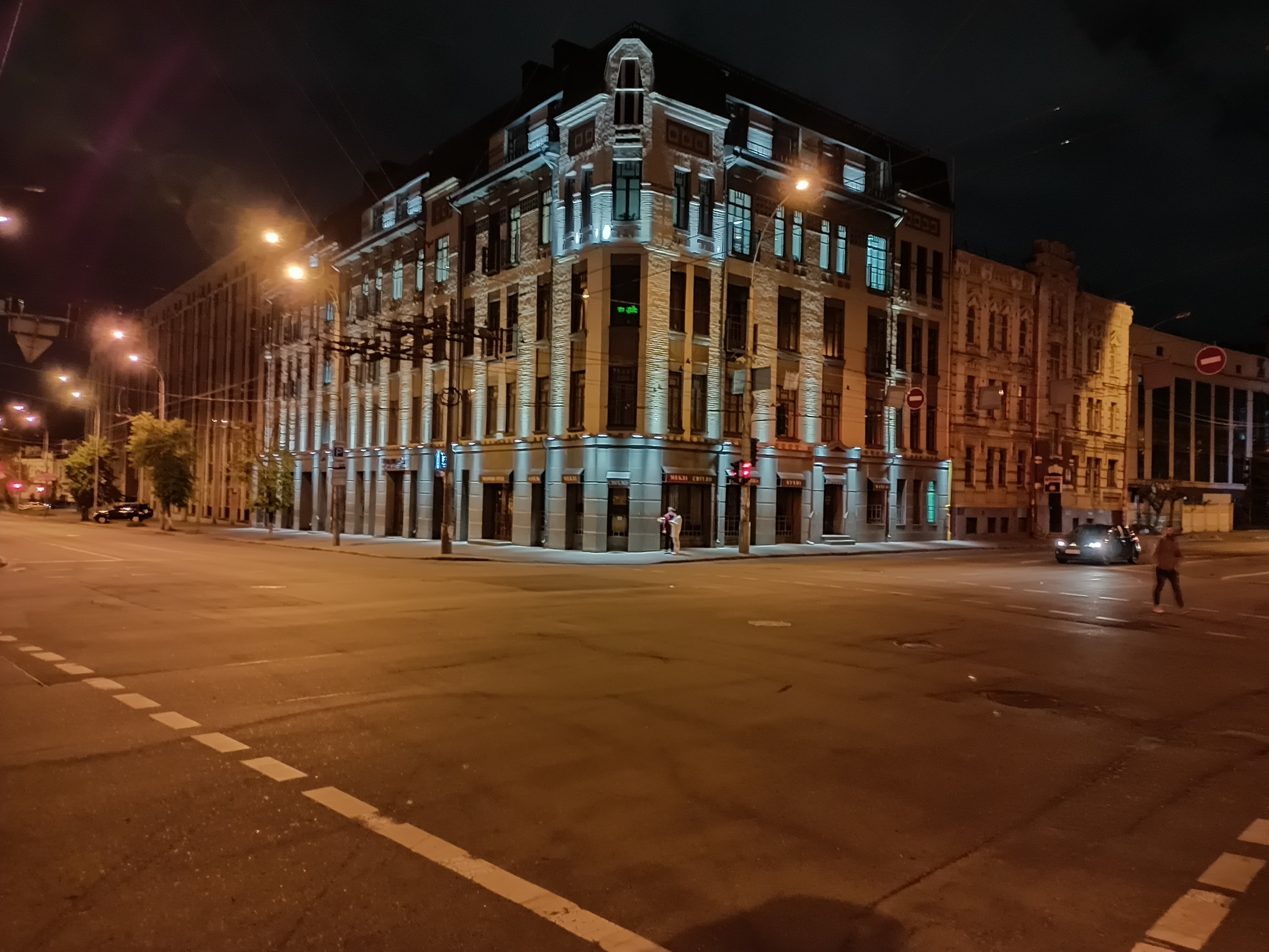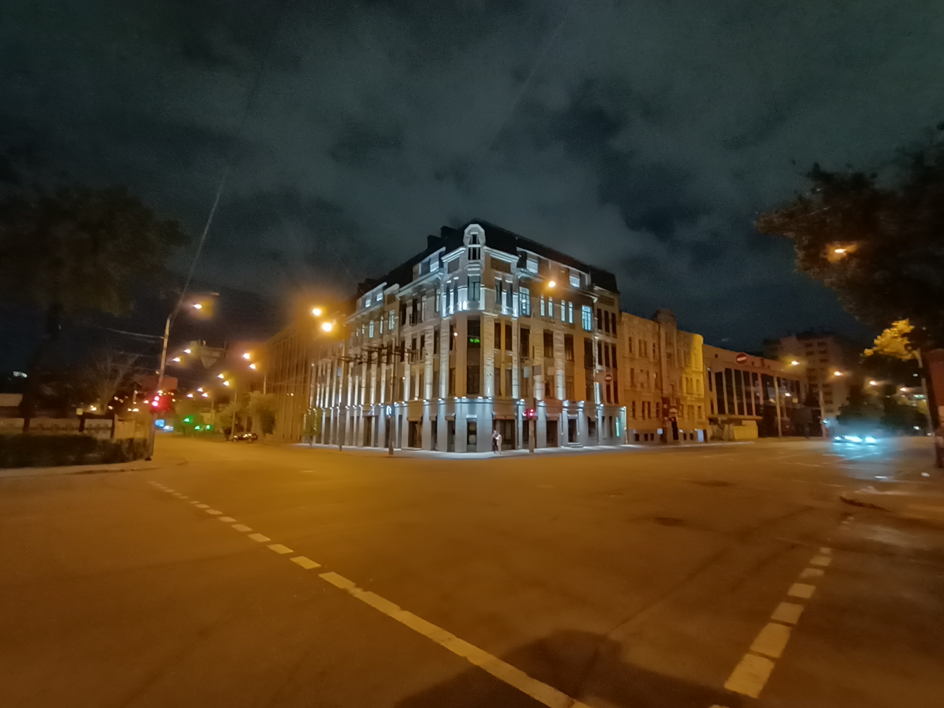 Aplikacja aparatu jest prosta i nieskomplikowana. Główne tryby przełączane są poziomymi przesunięciami, dodatkowe (w tym tryb makro i tryb profesjonalny) – w osobnym menu. Ustawienia HDR, lampy błyskowej, filtrów i wzmacniacza AI znajdują się na ekranie głównym. Jest zoom cyfrowy: kadr z głównego aparatu.
