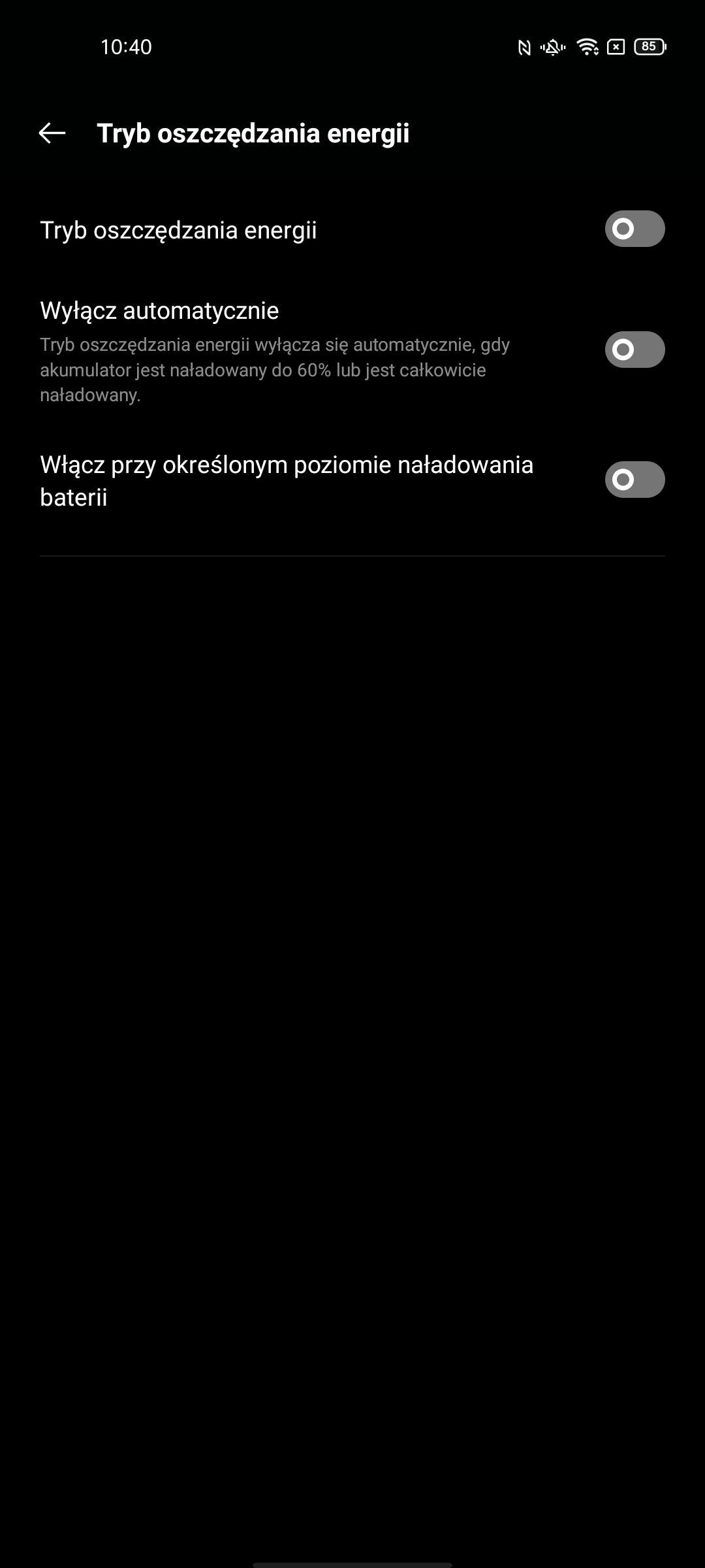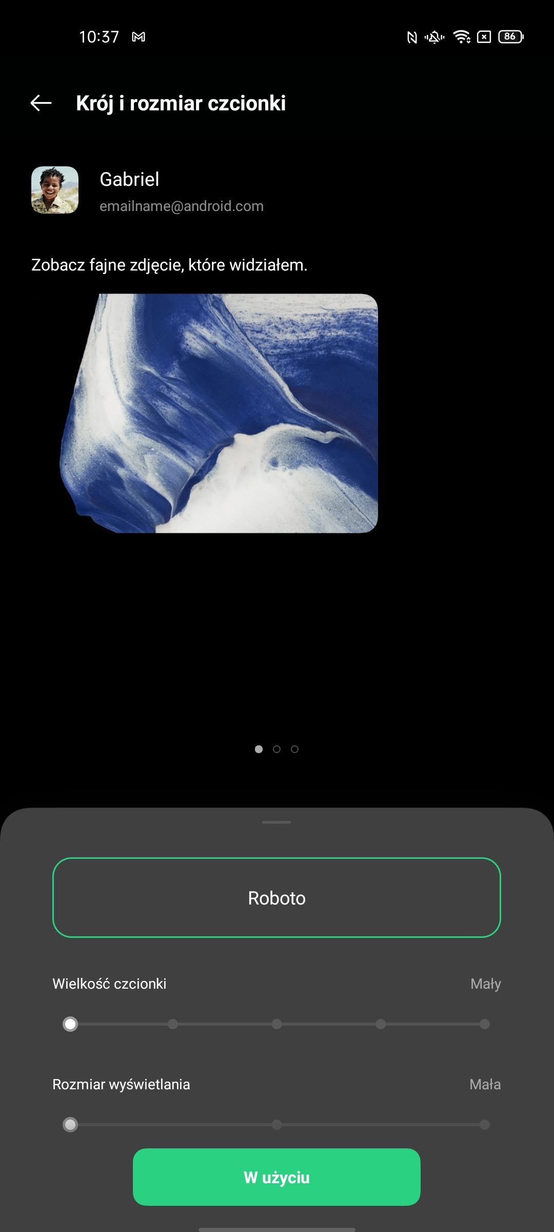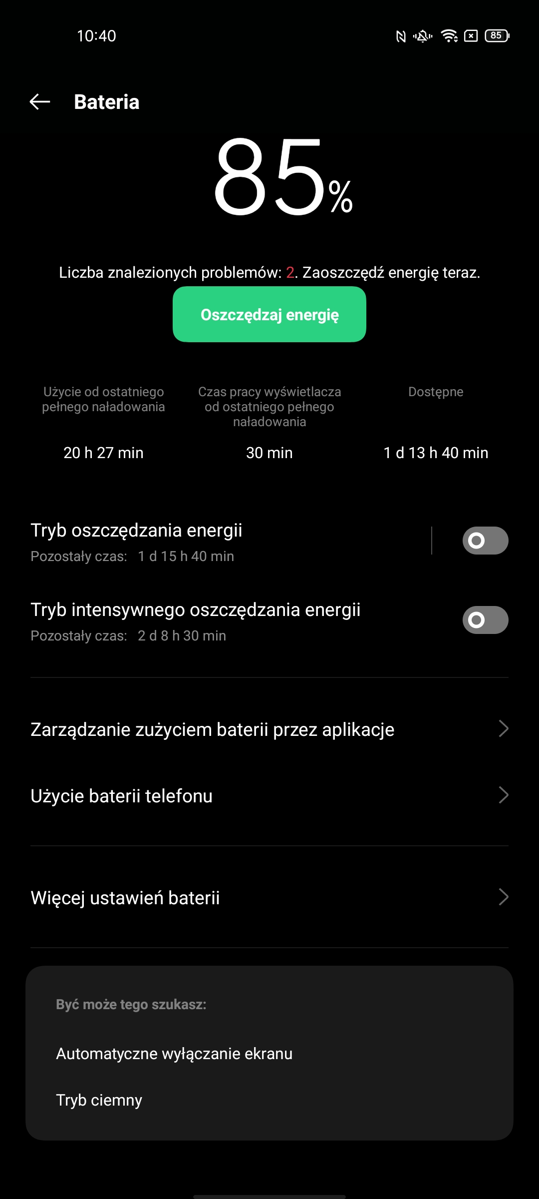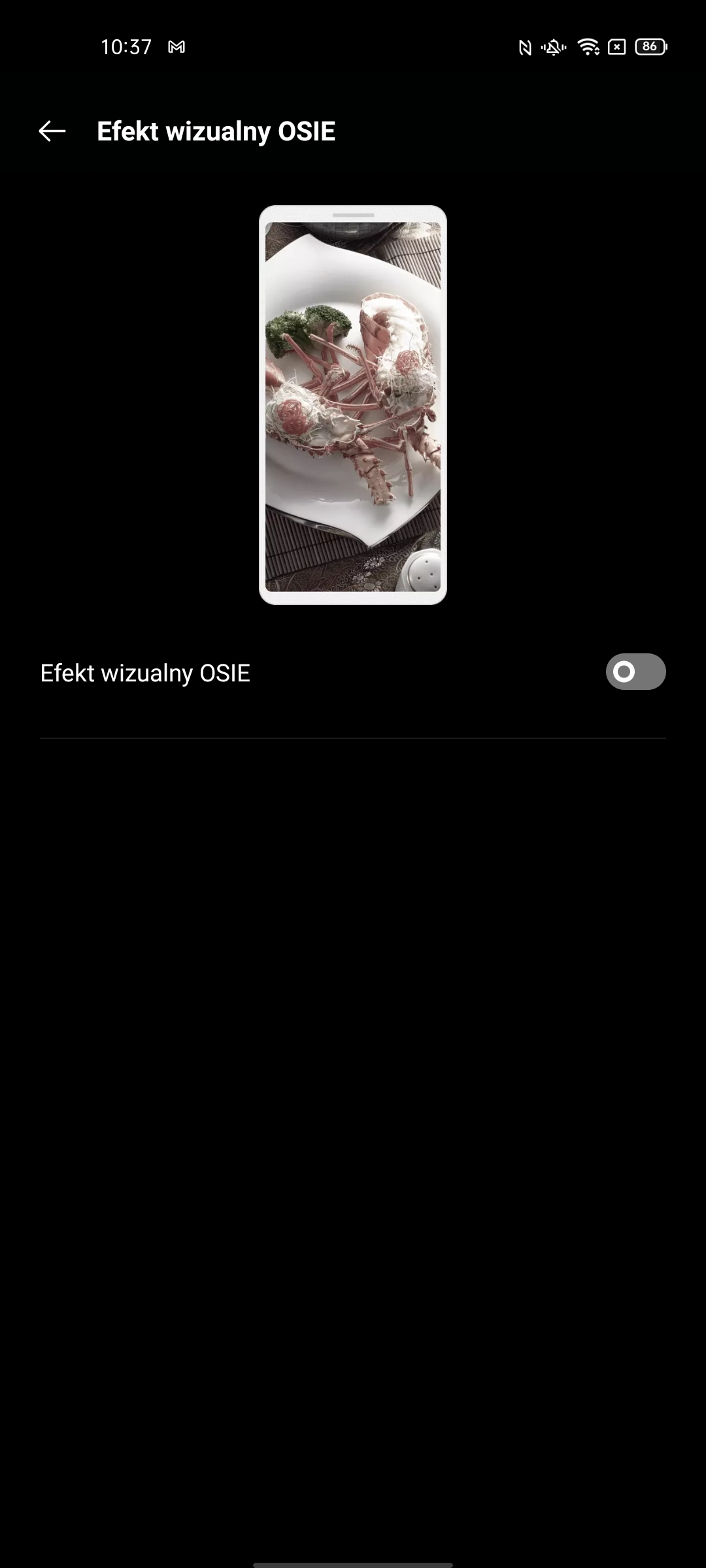 W ustawieniach ekranu jest ciemny motyw interfejsu, możliwość dostosowania skali interfejsu, rozmiaru czcionki, niebieski filtr. Dostępna jest funkcja redukcji migotania przy niskiej jasności i „efektu wizualnego OSIE”. Jest obecny we wszystkich smartfonach OPPO, ale nie można było zauważyć żadnych oczywistych ulepszeń na obrazie. Nie ma różnych trybów oddawania barw, ale jest możliwość ustawienie temperatury barwowej.