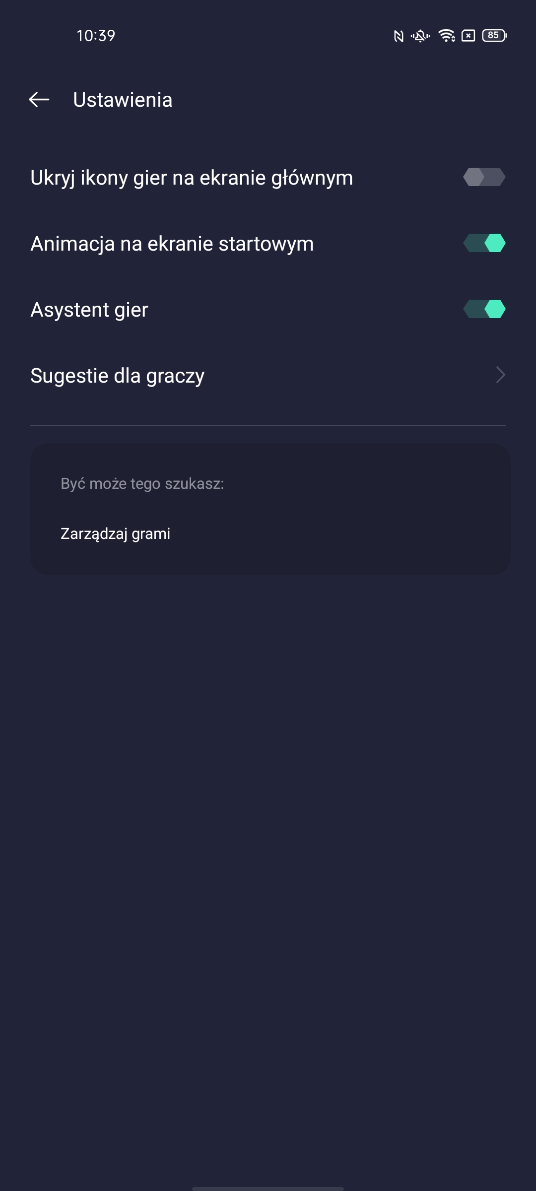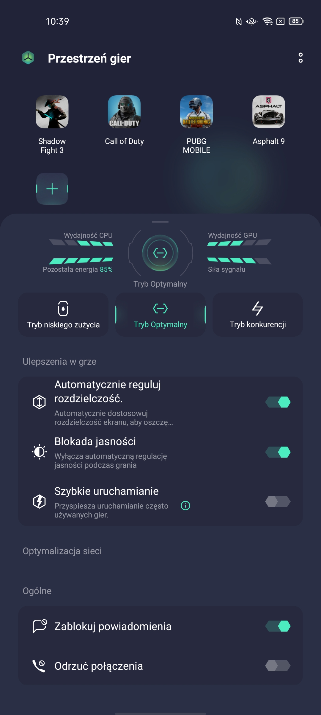 Aplikacja do gier OPPO jest obecna, podobnie jak w poprzednich smartfonach. Funkcjonalność odpowiada innym podobnym rozwiązaniom: blokowaniu powiadomień i połączeń, wybieraniu poziomu wydajności, blokowaniu poziomu jasności wyświetlacza.