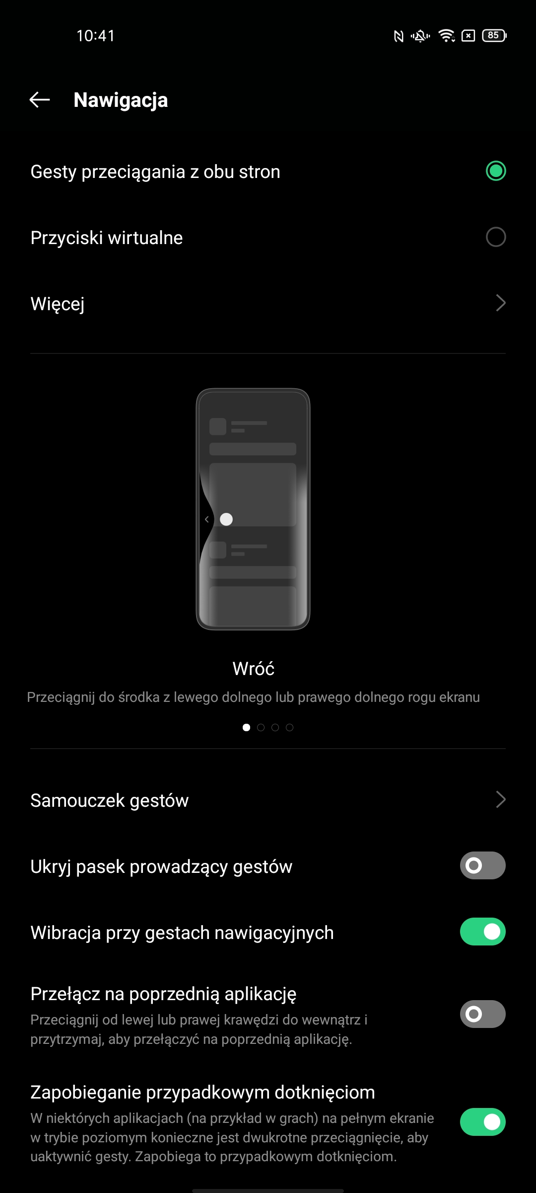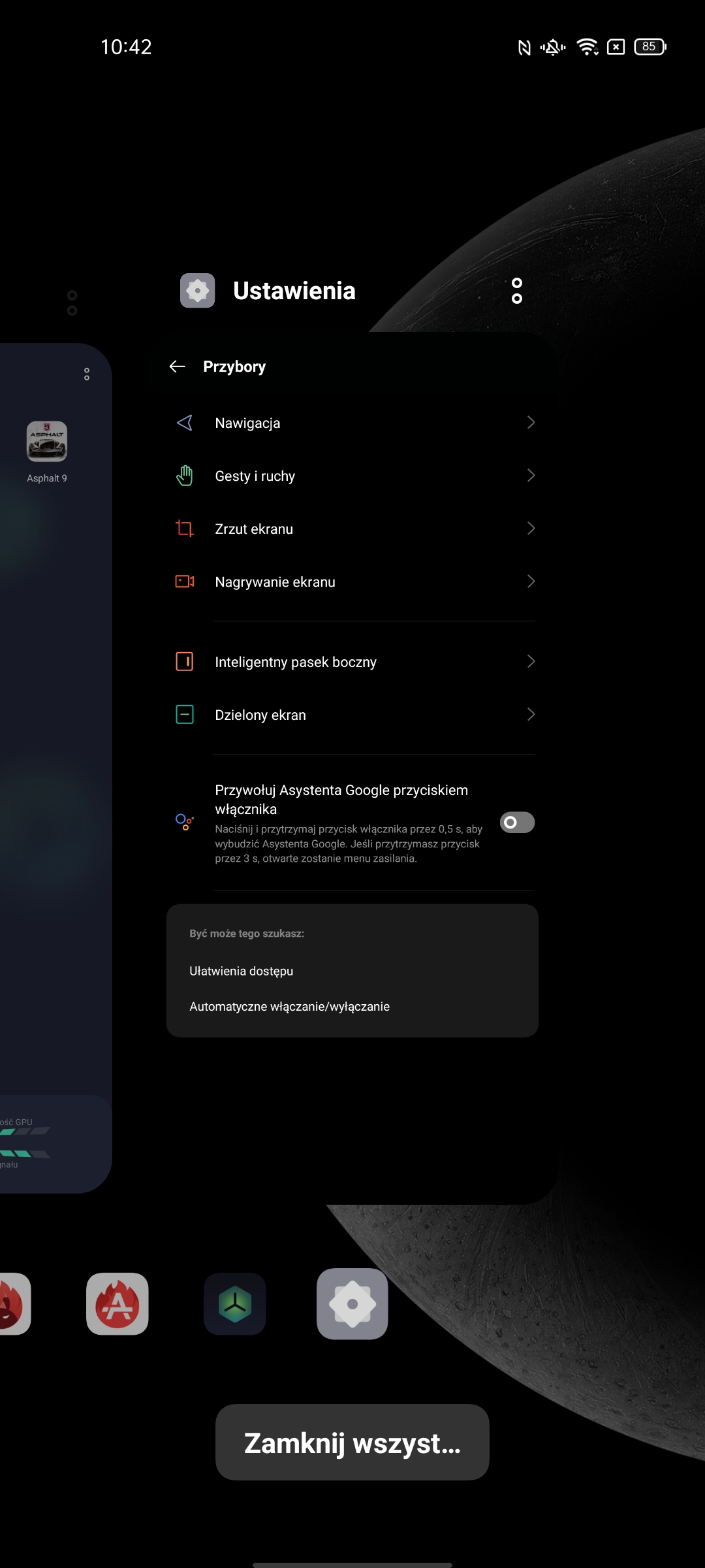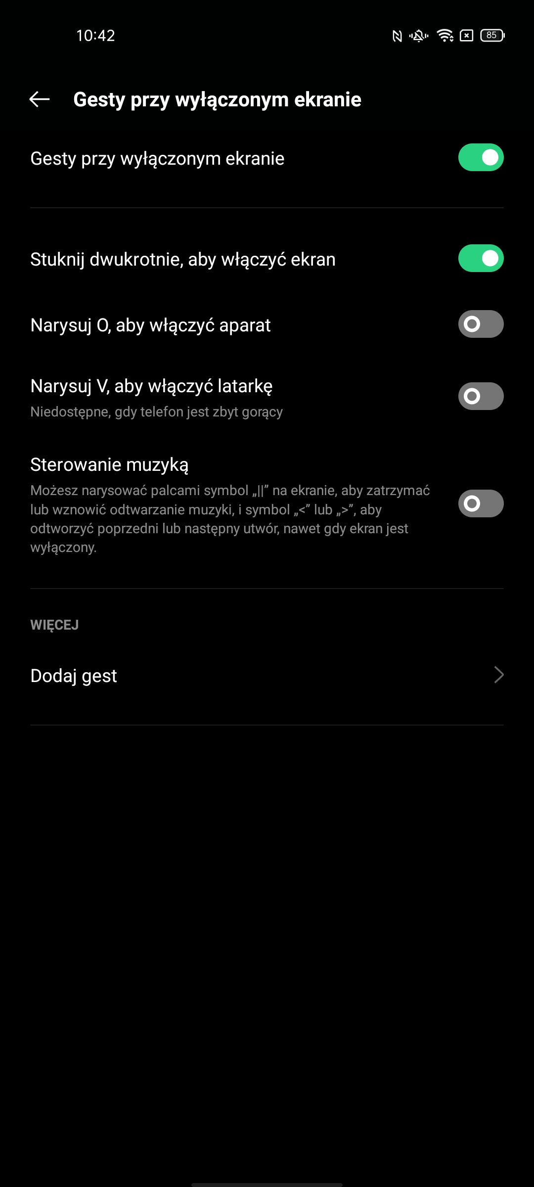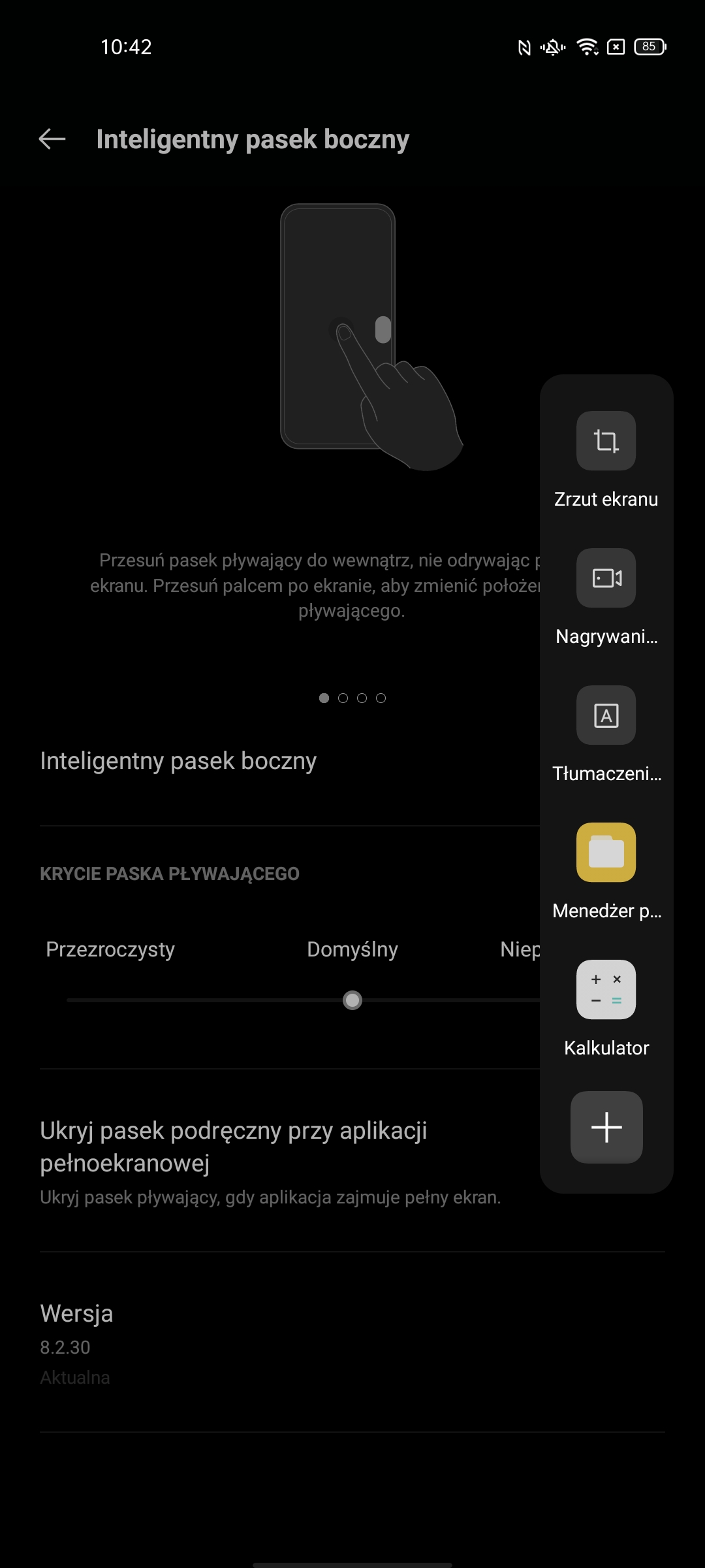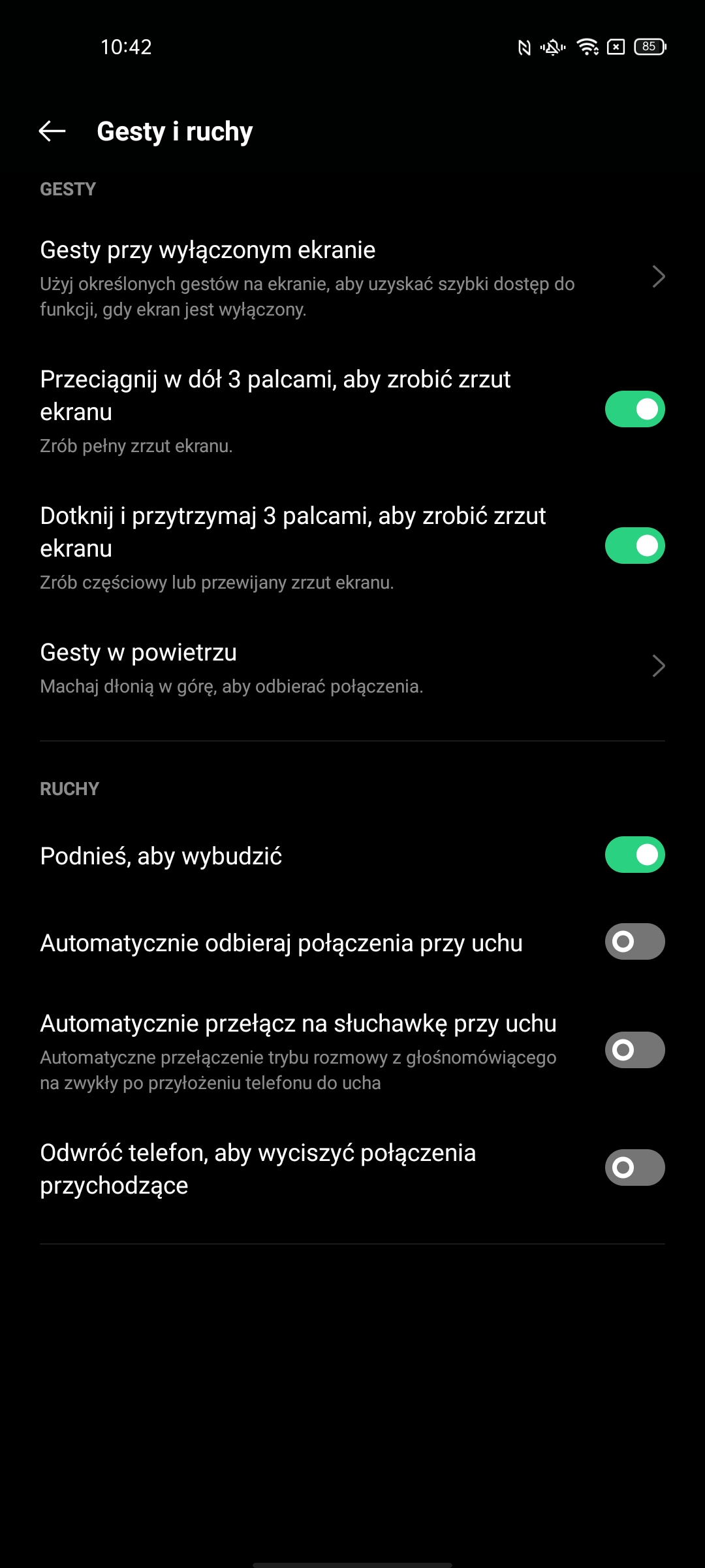 Oprócz trzech opcji poruszania się po systemie (pełnoekranowe gesty, przyciski i gesty z dołu ekranu) dostępne są dodatkowe gesty umożliwiające szybkie włączenie aparatu, latarki czy przełączanie utworów w odtwarzaczu przy wyłączonym ekranie . Są też gesty zbliżeniowe. Dokładniej jak dotąd tylko jeden, jak w poprzedniej wersji powłoki. Możesz odebrać połączenie, przesuwając dłoń przed przednią kamerą. To jeszcze nie działa bardzo dokładnie. Być może w przyszłości pojawią się dodatkowe gesty. Menedżer aplikacji jest standardowy: z możliwością indywidualnego przypinania i przełączania w tryb dwóch okien.