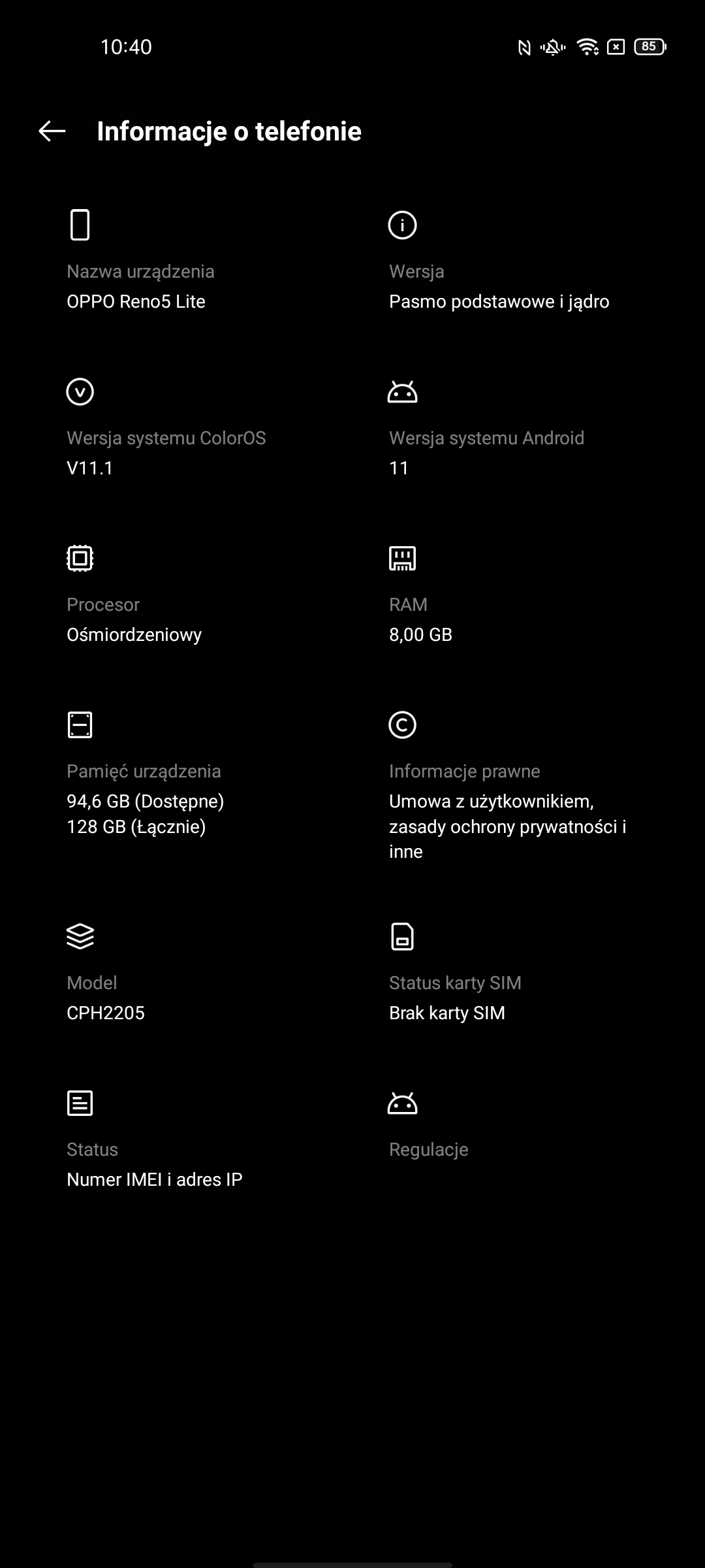 OPPO Reno5 Lite ma system operacyjny Android 11 z zastrzeżoną powłoką Color OS 11.1. OPPO zdecydowało się również użyć numeru wersji Androida w swojej powłoce. Zasadniczo Color OS 11.1 nie różni się zbytnio od poprzedniej wersji 7.2. Nie ma dużych różnic. Z tego co zwróciło moją uwagę - menu personalizacji, które pozwala dość elastycznie dostosować wygląd interfejsu do własnych upodobań. W przeciwnym razie wszystko jest znajome: tryb z oddzielnym menu aplikacji lub tylko pulpitami, tryb uproszczony, obsługa widżetów, konfiguracja siatki aplikacji i tak dalej.