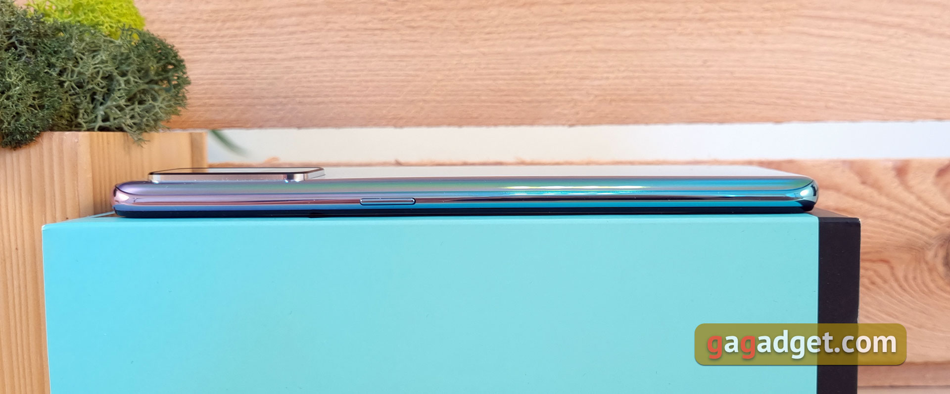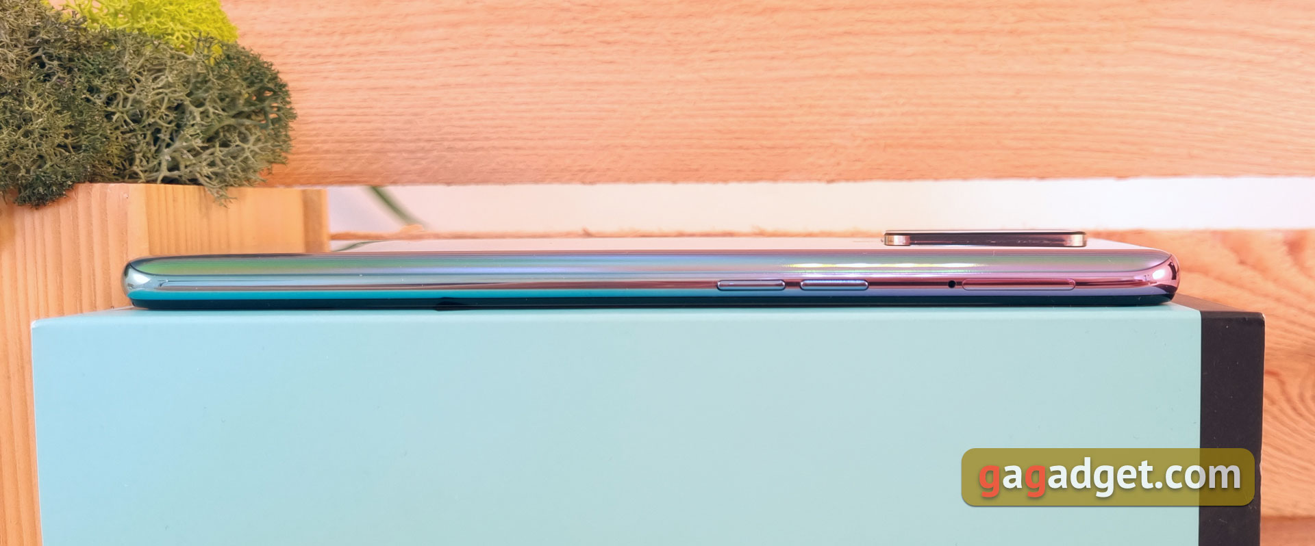 OPPO Reno5 Lite ma wygodny rozmiar. Jest dość wygodny w użyciu, o ile to słowo jest ogólnie stosowane we współczesnych realiach. Ze smartfonami z ekranami większymi niż 6 cali. Konstrukcja jest w porządku. Według materiałów - plastik to plastik, ale mamy smartfona ze średniego segmentu cenowego i dziwnie byłoby oczekiwać szkła. Tak, plastik szybko się rysuje szybciej, ale kompletny etui pomoże tego uniknąć.
