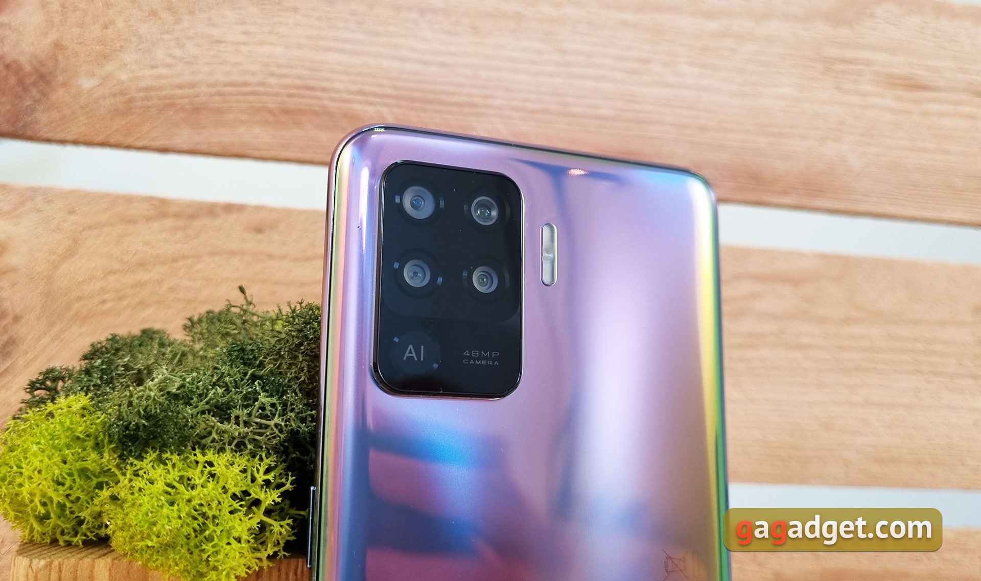 Tylny aparat prawie się nie zmienił w porównaniu do OPPO Reno4 Lite. Główny moduł ma rozdzielczość 48 megapikseli, rozmiar fizyczny 1/2,0″, optykę 26 mm, przysłonę f/1,7, autofokus z detekcją fazową, brak stabilizacji optycznej. Moduł szerokokątny ma rozdzielczość 8 megapikseli (1/4,0″), przysłonę f/2,2, kąt widzenia – 119°. Brakuje autofokusa. Trzeci moduł to 2-megapikselowy czujnik głębokości. W poprzednim modelu było ich dwóch. W nowym produkcie zamiast drugiego zainstalowana jest kamera makro na te same 2 megapiksele. Przedni aparat jest teraz pojedynczy, z rozdzielczością 32 megapikseli i przysłoną f/2.4. Postanowili usunąć drugi moduł.