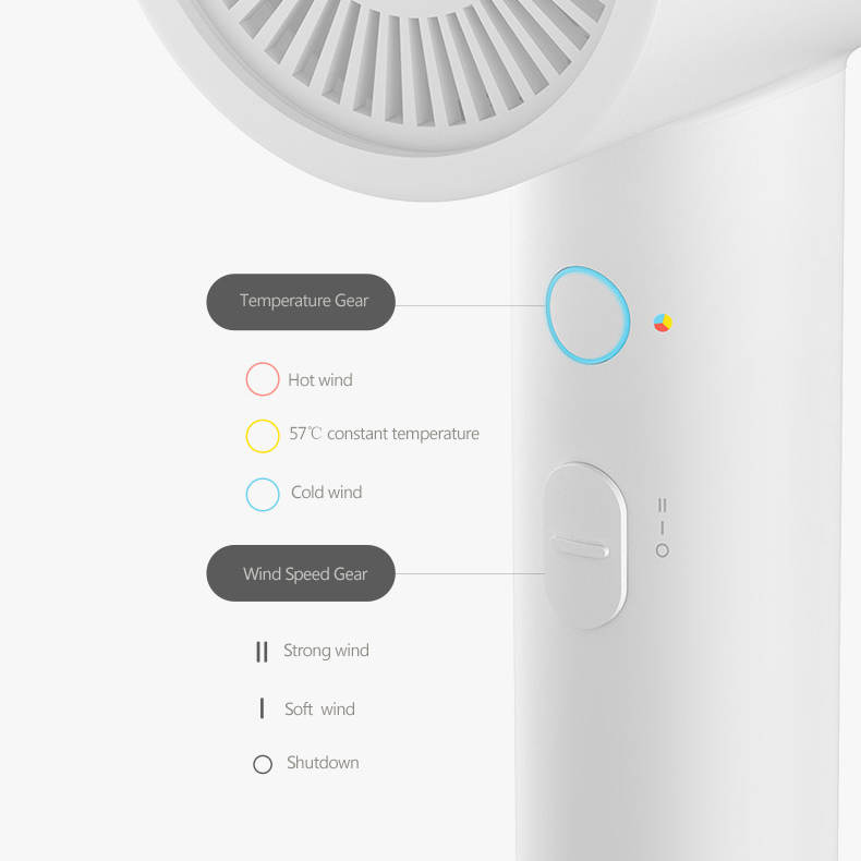 .Urządzenie sprzedawane jest pod nazwą MiJia Negative Ion Hair Dryer H300. Suszarka posiada plastikowy korpus w kolorze białym o długości 9,5cm. Posiada potrójne zabezpieczenie przed przegrzaniem, a także aerodynamiczny wentylator, który przyspiesza przepływ powietrza do 20m/s. Jego optymalna temperatura wynosi 57°C. W razie potrzeby można zmniejszyć lub zwiększyć temperaturę.