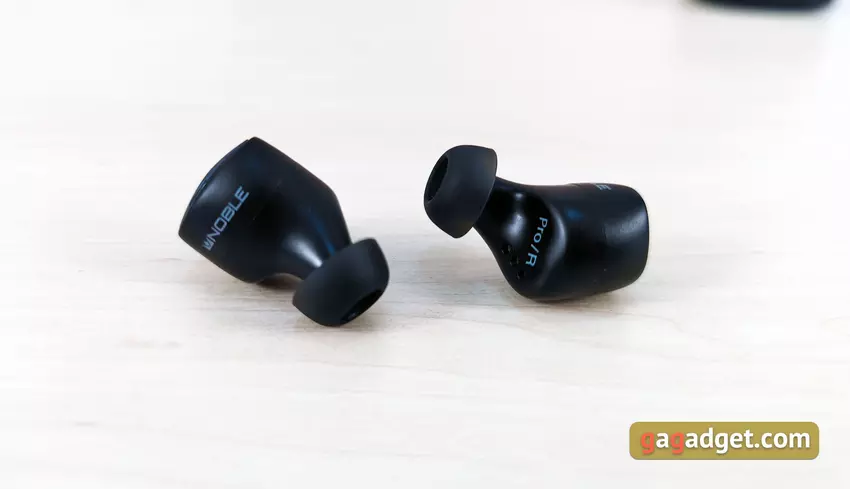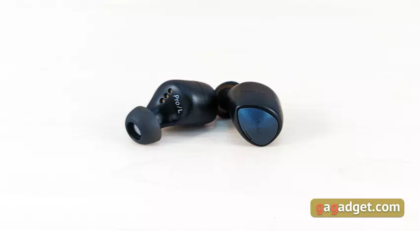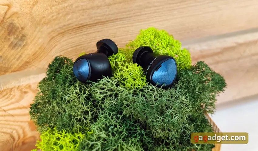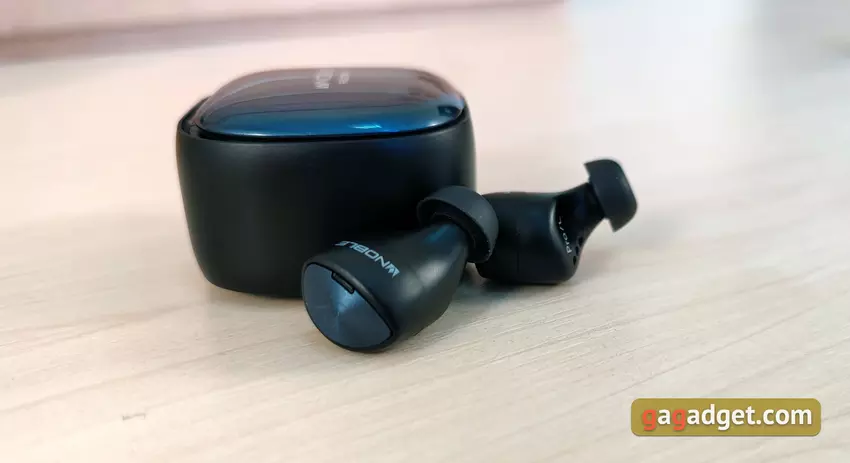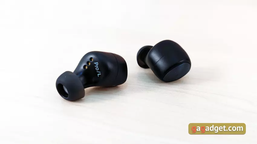 Słuchawki są lekkie i mają całkiem niezły kształt. Mają doskonałe, głębokie dopasowanie do małżowiny usznej, są dobrze zamocowane i nie wylatują z uszu, nawet podczas biegania. Ale najpierw musiałem trochę poeksperymentować, aby znaleźć dla mnie optymalną pozycję z lepszą izolacją akustyczną. Krótko mówiąc, przy doborze odpowiednich końcówek i dopasowaniu, pasywna izolacja akustyczna jest doskonała. Ale dla tych, którzy boją się odizolować się od świata zewnętrznego, jest tryb przezroczystości Hear Through. Użytkownik otrzymuje dźwięk z mikrofonów, aby słyszeć, co się dzieje wokół. Jedynym ważnym punktem, który należy wiedzieć o użyteczności, jest to, że wkładki douszne wystają nieco poza uszy. Jest szansa, że zimą w czapce nie będzie to zbyt wygodne.