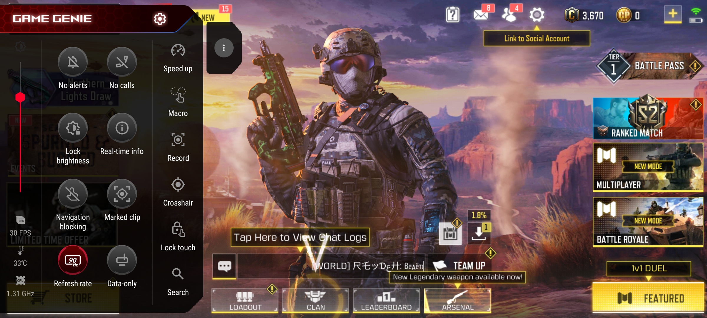 Smartfon posiada narzędzie do gier Game Genie ze standardowym zestawem funkcji (wyłączone powiadomienia, połączenia, optymalizacja systemu, blokowanie jasności, nagrywanie wideo), do których dodaliśmy jeszcze kilka elementów, które mogą się przydać. Widok na ekranie, nagrywanie makro i nakładka z metrykami w czasie rzeczywistym, w tym licznikiem FPS. W grach wszystko jest w porządku: NFS No Limits, Genshin Impact i Call of Duty Mobile prezentują stabilne 60 klatek na sekundę przy maksymalnych ustawieniach graficznych. Shadowgun Legends — waha się od 90 do 120 FPS.