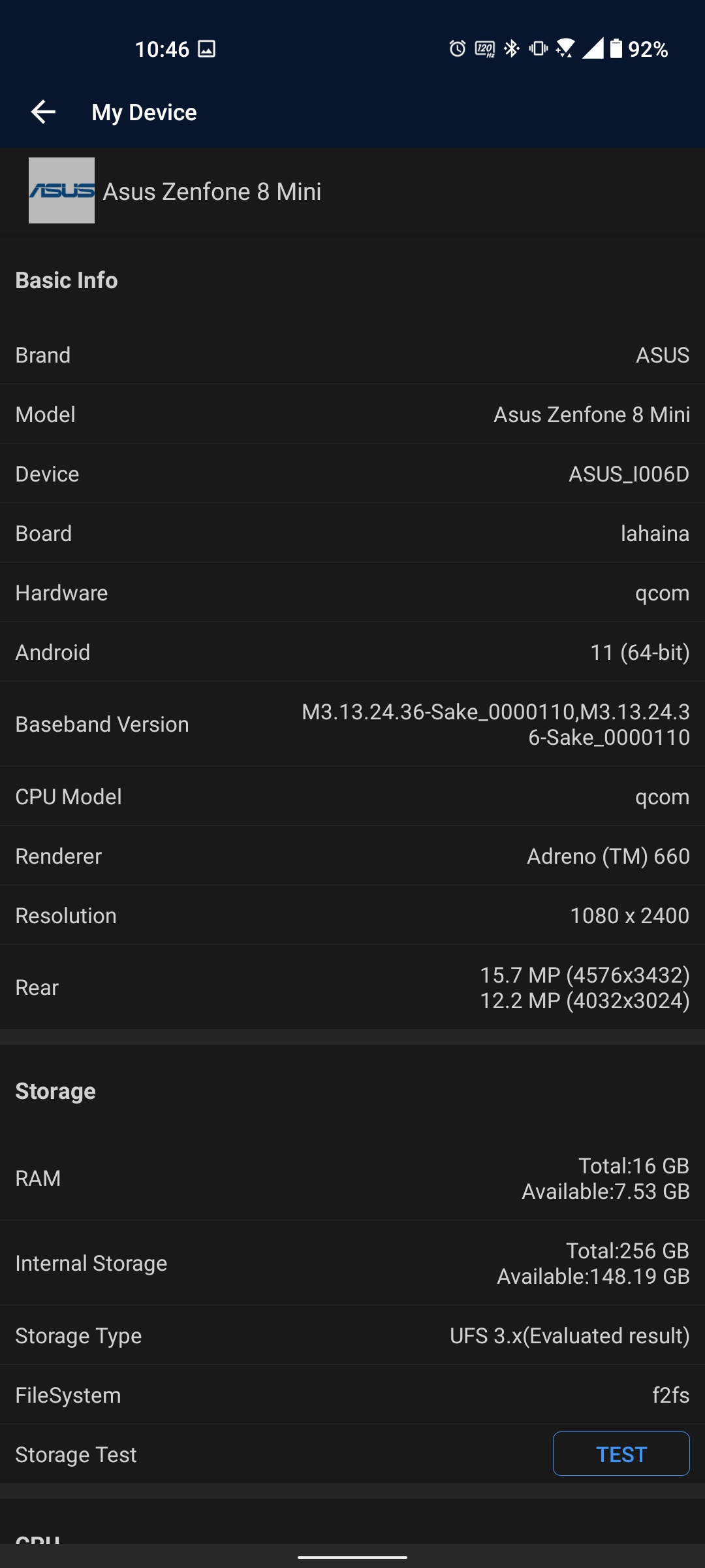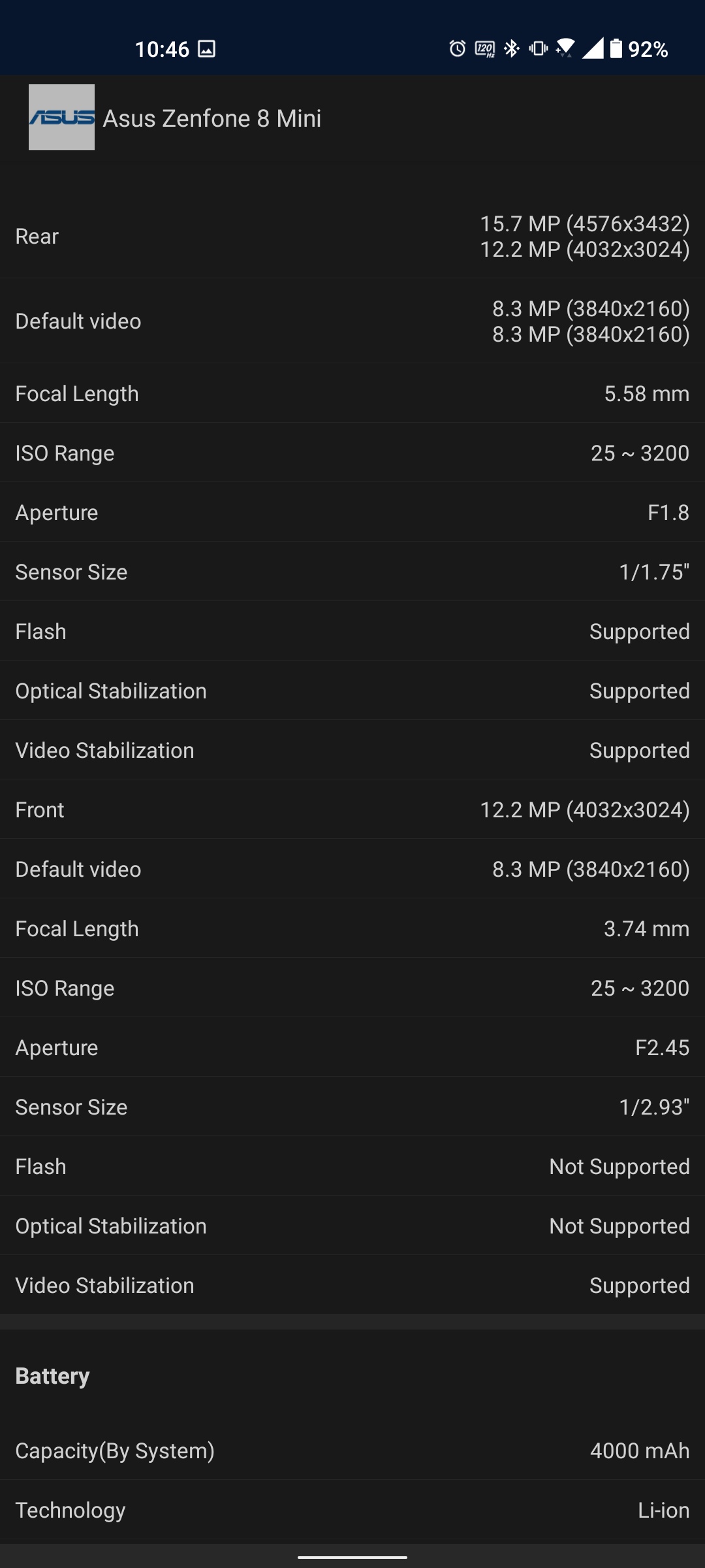 | Dane techniczne ASUS ZenFone 8 | |