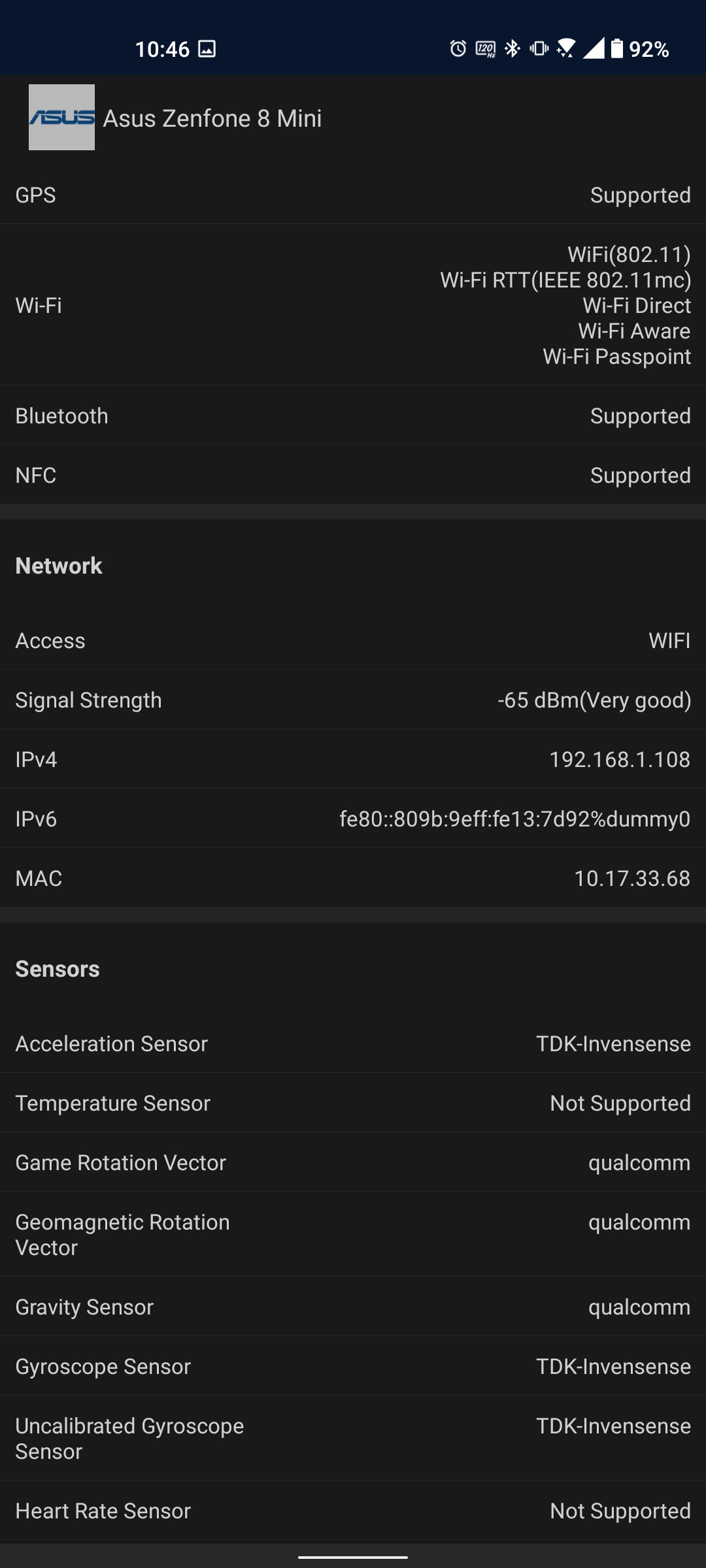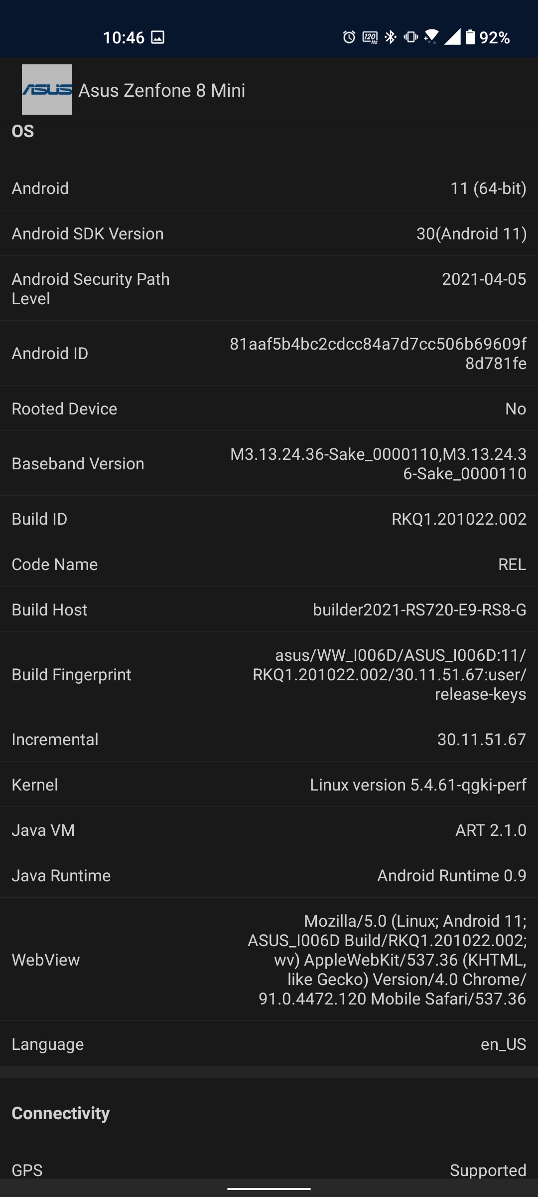 Interfejsy bezprzewodowe: dwuzakresowe Wi-Fi 802.11 a/b/g/n/ac/6e 2,4 GHz i 5 GHz, Bluetooth 5.2 LE (obsługiwane są kodeki aptX HD, aptX Adaptive, LDAC), jest NFC do płatności zbliżeniowych. Globalne systemy pozycjonowania GPS, GLONASS, GALILEO, BDS, QZSS, NavIC. Dźwięk stereo zapewnia dwa wzmacniacze Cirrus Logic CS35L45. I trzeba powiedzieć, że ASUS ZenFone 8 brzmi znacznie głośniej, niż można by się spodziewać po tak kompaktowym smartfonie. Jednocześnie jakość jest również w porządku. ZenFone 8 produkuje też bardzo przyzwoity dźwięk w słuchawkach, jest obsługa nagrań do 384 kHz / 32-bit. Do konfiguracji służy narzędzie Audio Wizard.