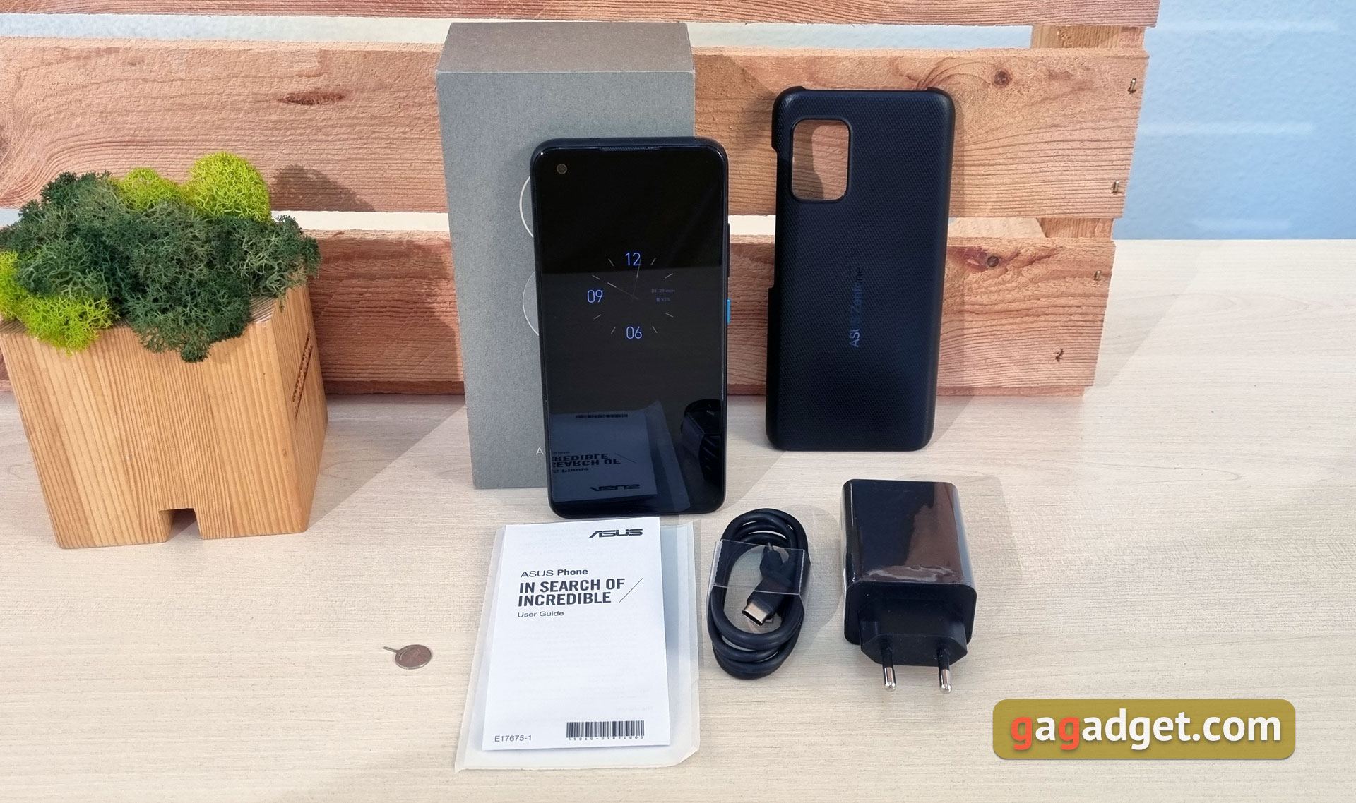 Kompaktowy ASUS ZenFone 8 jest dostarczany w stylowym pudełku w spokojnym szarym kolorze z numerem 8. W zestawie - smartfon, zasilacz 30 W, kabel Type-C do Type-C, narzędzie do wysuwania tacy, dokumentacja i opatentowane etui ochronne. Wykonany jest z czarnego teksturowanego plastiku.