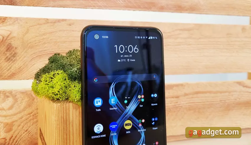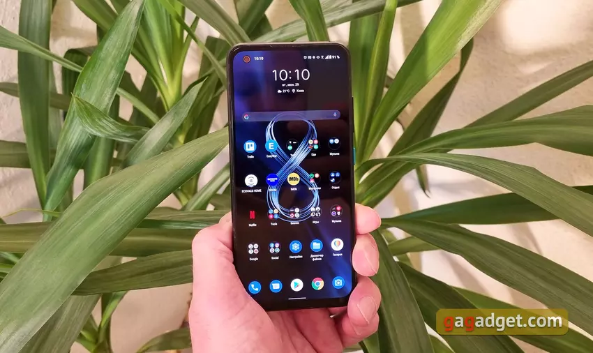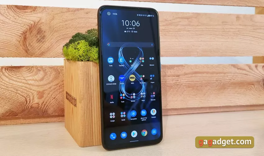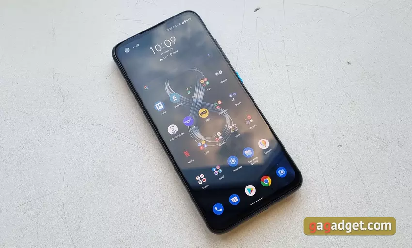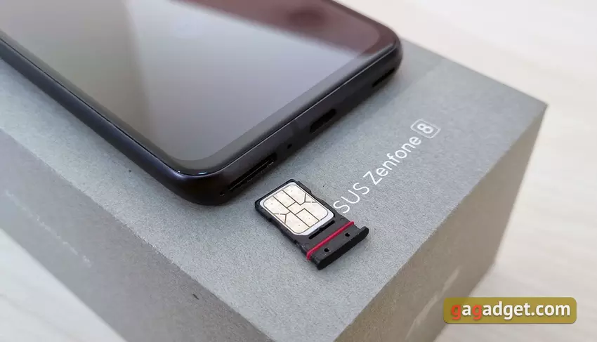 W przeciwieństwie do ASUS ZenFone 8 Flip, konstrukcja ZenFone 8 jest bardziej „znajoma”, jeśli nie weźmie się pod uwagę wymiarów. Smartfon jest bardzo kompaktowy w porównaniu do obecnych smartfonów z Androidem. I faktycznie jedyny w swoim rodzaju kompaktowy obecny flagowiec. Ostatni raz podobny smartfon został wydany w 2019 roku w obliczu Samsunga Galaxy S10e. ASUS ZenFone 8 ma 5,9-calowy ekran, wymiary smartfona to 148x65,8x8,9 mm, a waga to 169 g. Wszystko inne jest znajome: prawie cały przedni panel zajmuje ekran z otworem dla przedniego aparatu w lewym górnym rogu. Jest chroniony przez Corning Gorilla Glass Victus. W górnej części znajduje się cienka siateczka nausznika, która pełni również rolę dodatkowej siatki do odtwarzania dźwięku stereo.