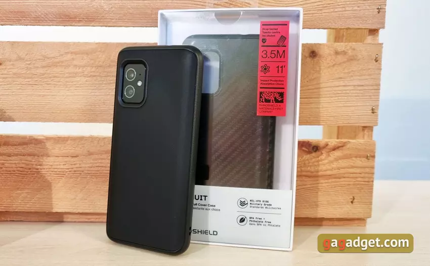 Dodatkowo istnieją jeszcze bardziej zabezpieczone warianty SolidSuit firmy Rhinoshield. W nich smartfon (teoretycznie) wytrzyma upadek z wysokości 3,5 metra.
