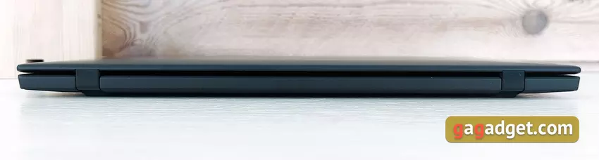 Jedyną ciekawą rzeczą z tyłu są zawiasy. Chociaż laptop jest również dostępny z modułem LTE, a gniazdo karty SIM w takich konfiguracjach znajduje się z tyłu.
