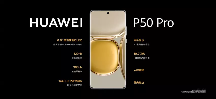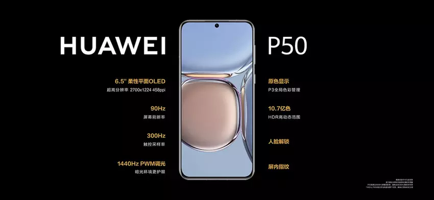 Następna generacja flagowców wyposażona jest w ekrany OLED. Jest też podekranowy czujnik biometryczny, obsługa HDR i mały otwór na 13-megapikselowy aparat przedni. Huawei P50 Pro wyposażono w 6,6-calowy, zakrzywiony na krawędziach panel o rozdzielczości 2700 x 1225 punktów i częstotliwości odświeżania 120 Hz. W Huawei P50 zastosowano płaską matrycę 90Hz Full HD+ o przekątnej 6,5".