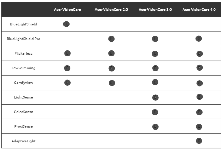 Zaawansowane wersje VisionCare 3.0 i 4.0 znajdują się we flagowych urządzeniach, gamingowych modelach Predator oraz "kreatywnych" monitorach ConceptD.
