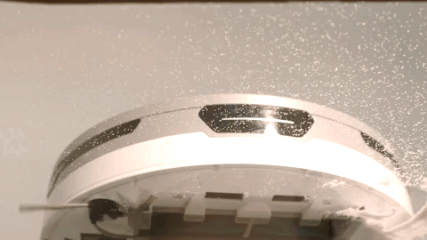 Użycie zaawansowanych technologicznie urządzeń i zaawansowanych technik filmowania pozwoliło nam uchwycić (no dobra, zdradzę sekret - po prostu sfilmowaliśmy odkurzacz od dołu na szklanym blacie) jak Jet Bot+ radzi sobie z czyszczeniem twardych powierzchni. Pierwszy klip odtwarzany jest z normalną prędkością, natomiast pozostałe pokazują go 4 razy wolniej niż w rzeczywistości, więc można zobaczyć, co się dzieje.