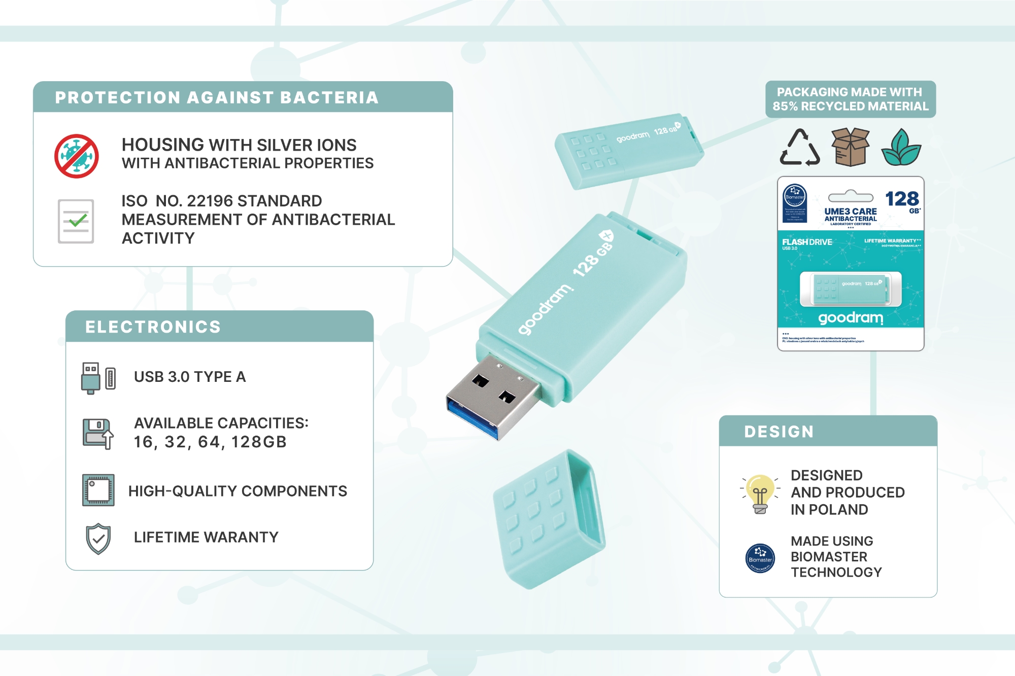 GOODRAM USB UME CARE: kompaktowy napęd USB z antybakteryjną obudową