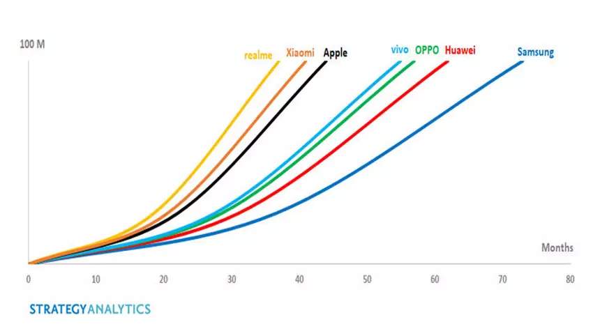 Osiągnięcie tego wyniku zajęło producentowi 37 miesięcy. Takim tempem nie może pochwalić się Samsung, Apple, Huawei, czy Xiaomi. Zajęło im to od 40 do 72 miesięcy. Rynki Chin i Indii odegrały niemałą rolę w osiągnięciu tego celu.