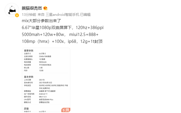Ekran OLED 120Hz, układ Snapdragon 888+, ładowanie 120W, ochrona IP68 i 1TB ROM: wyciekły szczegóły dotyczące flagowca Xiaomi Mi MIX 4