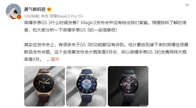 Według insidera z sieci społecznościowej Weibo, Honor Watch GS3 będzie musiał poczekać. Zegarek ma się ukazać dopiero we wrześniu. Zostaną one zaprezentowane na najbliższej imprezie firmy.