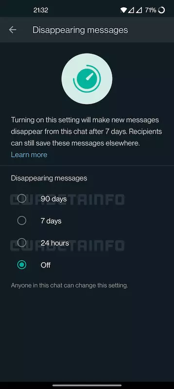 Źródło ujawniło nową opcję w najnowszej wersji beta WhatsApp dla Androida. Oprócz opcji 24-godzinnej, która była testowana od miesięcy, istnieje teraz 90-dniowe ustawienie automatycznego kasowania.