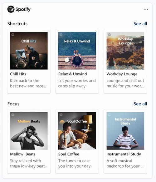 Jednak najważniejszą cechą jest integracja z serwisem Spotify. W oparciu o badania, które wykazały, że dźwięk pomaga zmniejszyć rozproszenie uwagi i poprawić koncentrację, Focus Sessions może połączyć się z kontem Spotify użytkownika i odtwarzać muzykę, aby pomóc mu wejść w "stan pracy".