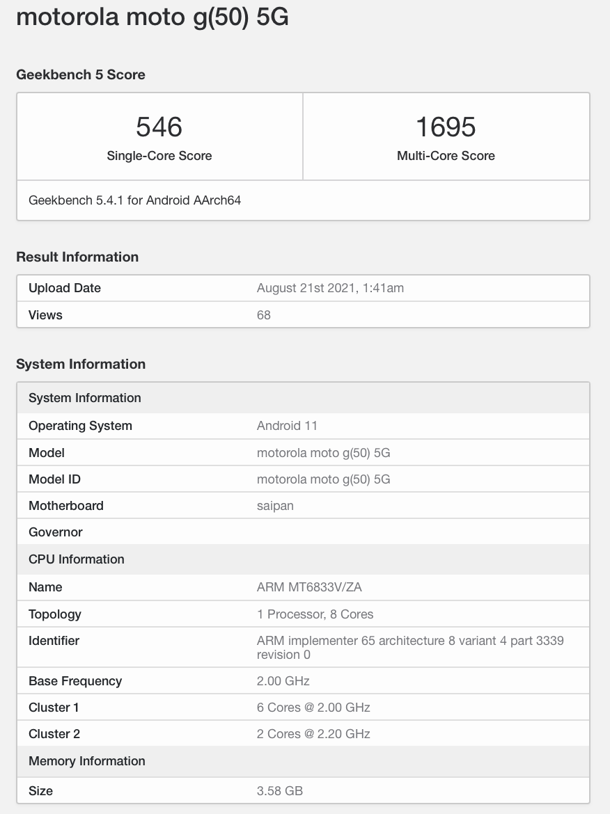 Jeszcze niezapowiedziany smartfon Moto G50 5G, o nazwie kodowej Saipan, został zauważony w bazie danych testu wydajności Geekbench.