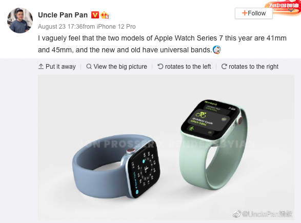 Według informatora, Apple Watch Series 7 będzie dostępny w rozmiarach 41 mm i 45 mm. Oznacza to, że nowy produkt będzie większy od obecnej generacji Apple Watch Series 6. Przypomnijmy, że przed Apple Watch Series 4, smartwatche firmy były sprzedawane w rozmiarach 38 i 42 mm, ale potem zostały one zwiększone do 40 i 44 mm, odpowiednio. Nawiasem mówiąc, wszystkie modele Apple Watch mają kompatybilne paski. Wygląda na to, że nowa generacja zachowa tę cechę.