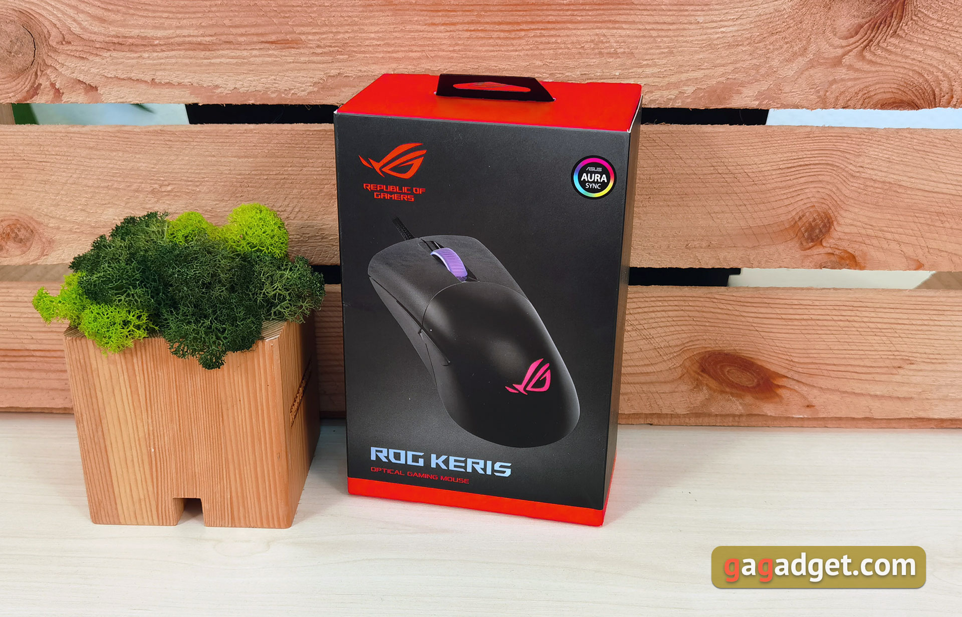 Zewnętrznie ASUS ROG Keris to typowa mysz gamingowa tej firmy: czarny kolor podstawowy, podświetlane logo ROG na „tyłu” i podświetlane kółko przewijania. Cała powierzchnia wykonana jest z matowego plastiku. Gładszy korpus i panele boczne, główne przyciski z PBT (politereftalan butylenu). Ten rodzaj plastiku jest twardszy, trwalszy i ma bardziej chropowatą powierzchnię. Jedną z głównych cech myszy jest to, że gadżet posiada niską wagę: tylko 62 g bez kabla. Jednocześnie twierdzi się, że sztywność nie została w żaden sposób naruszona ze względu na wewnętrzną strukturę w postaci plastra miodu. Podobne rozwiązanie jest już stosowane w laptopach gamingowych ASUS. ROG Keris to asymetryczna mysz dla praworęcznych. Chociaż po bokach nie ma radykalnych występów ani „oznaczeń”.
